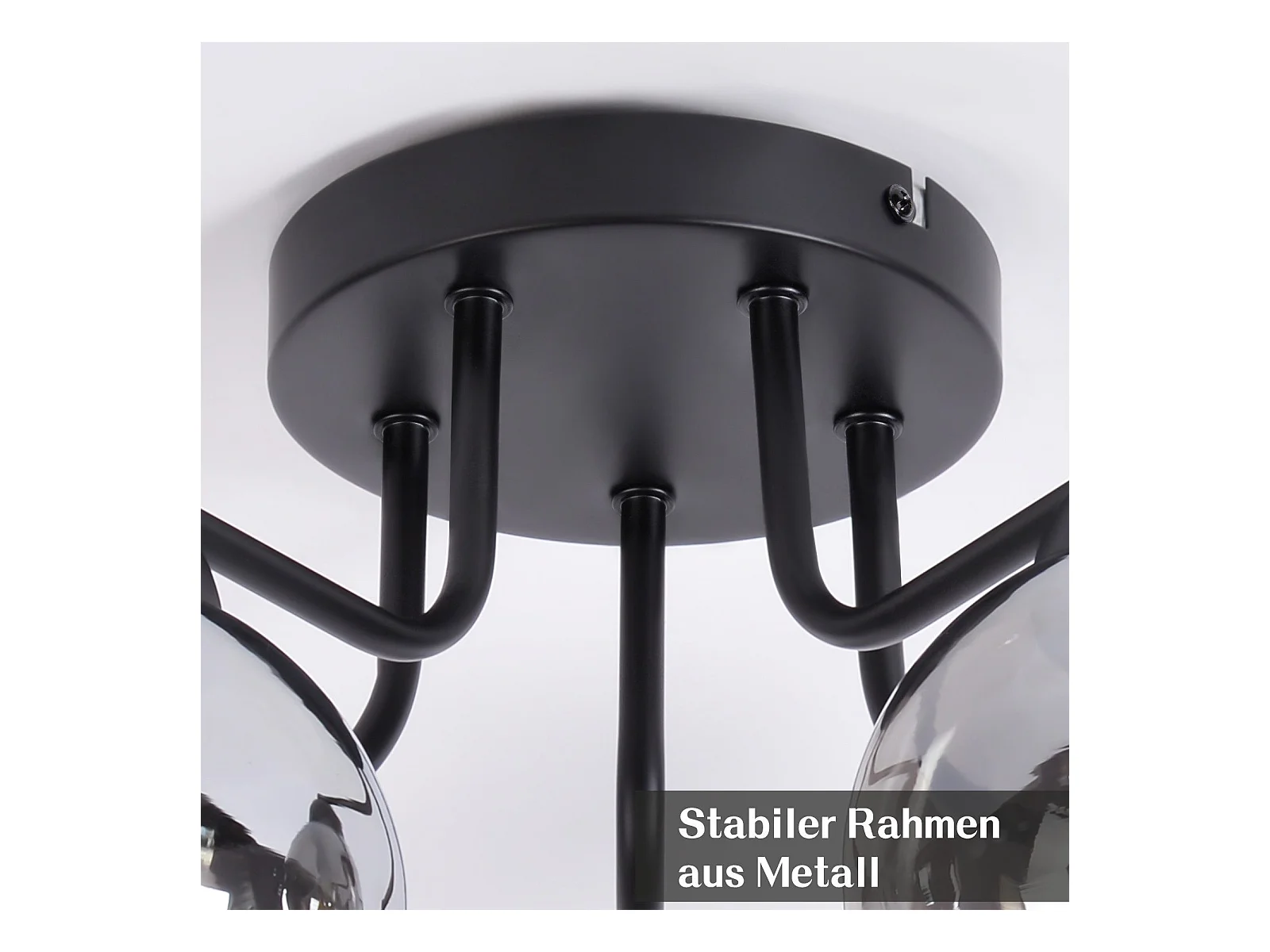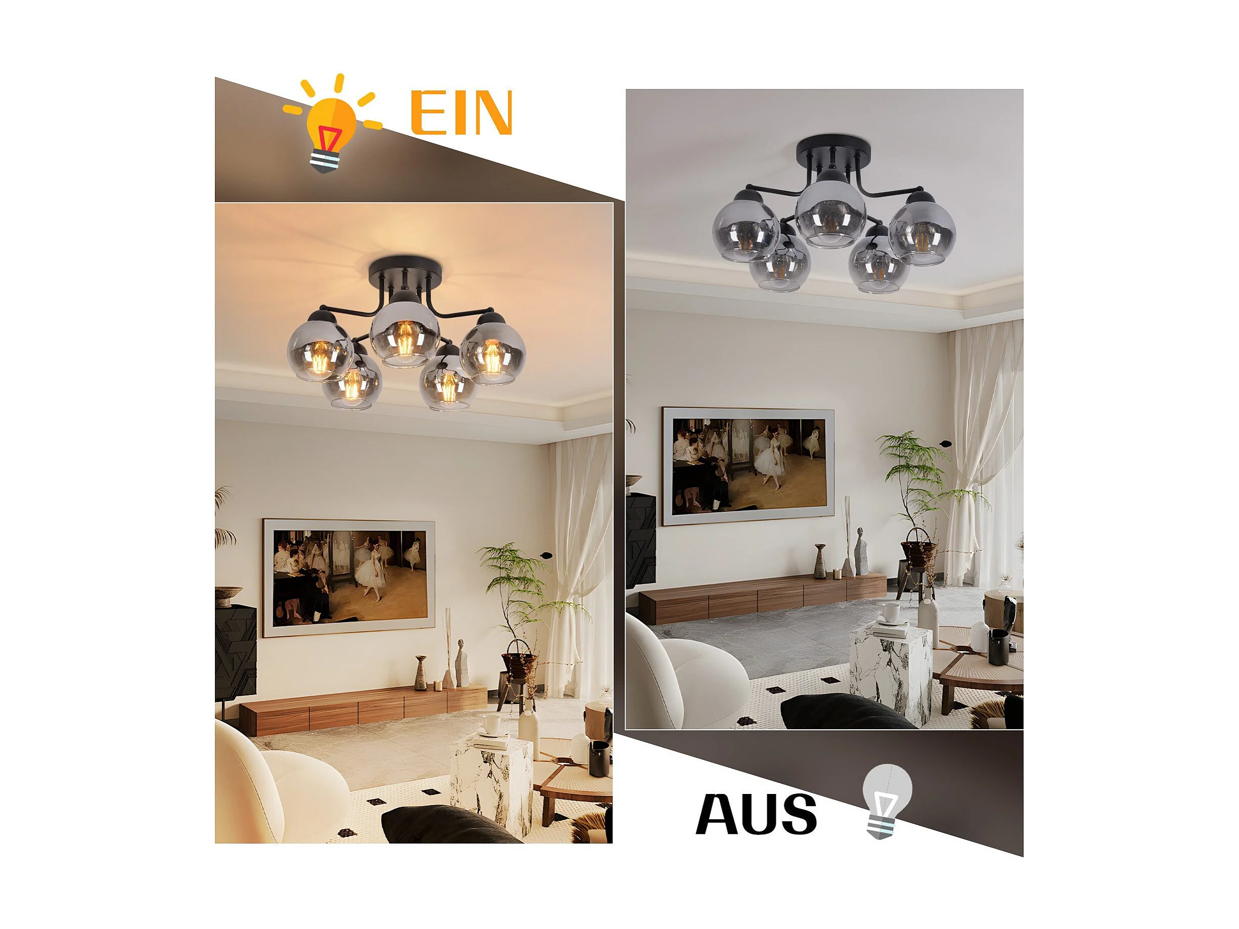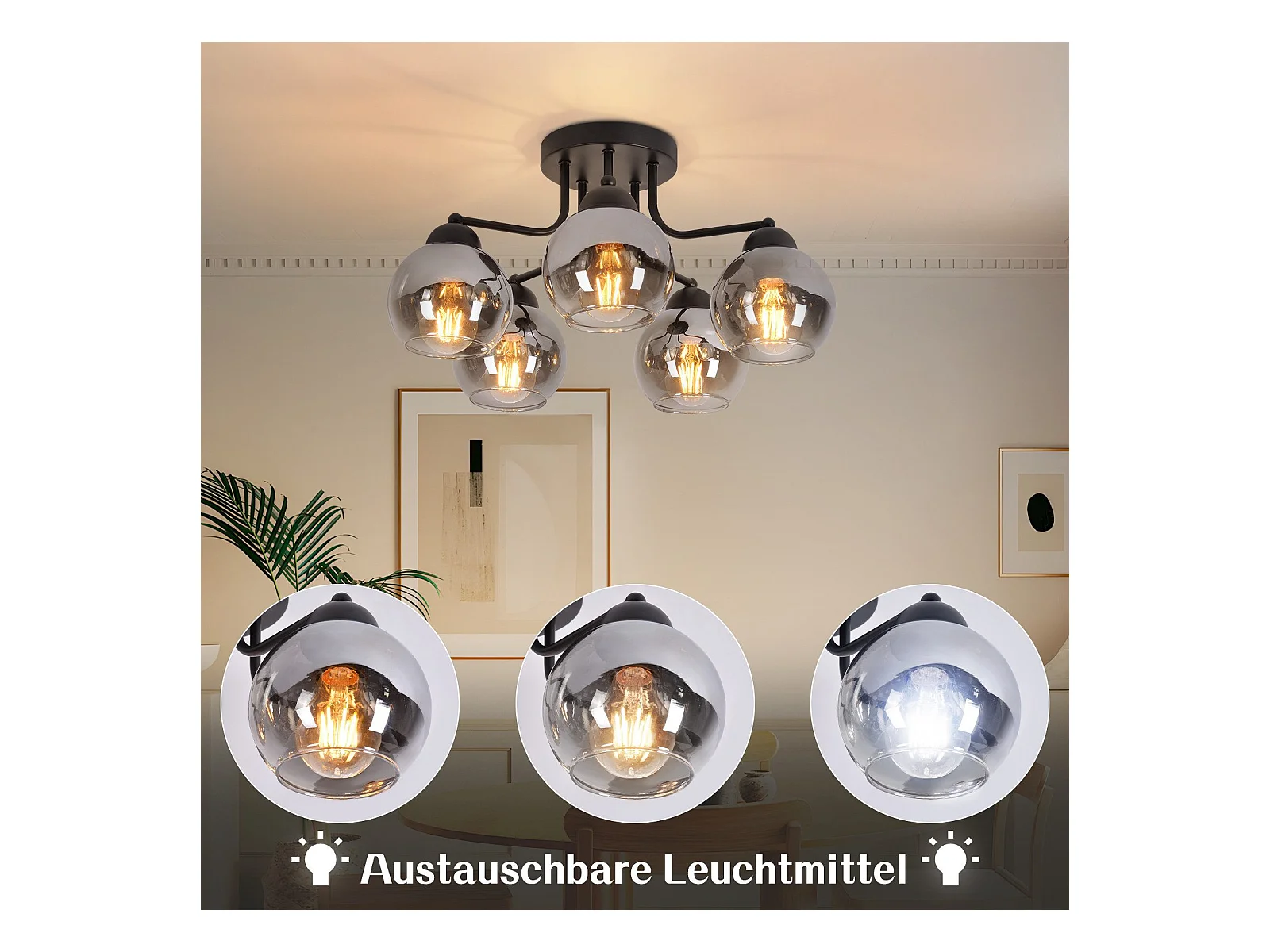 Plafonnier NETTLIFE en verre vintage : noir 5 lumières gris fumé en métal E27