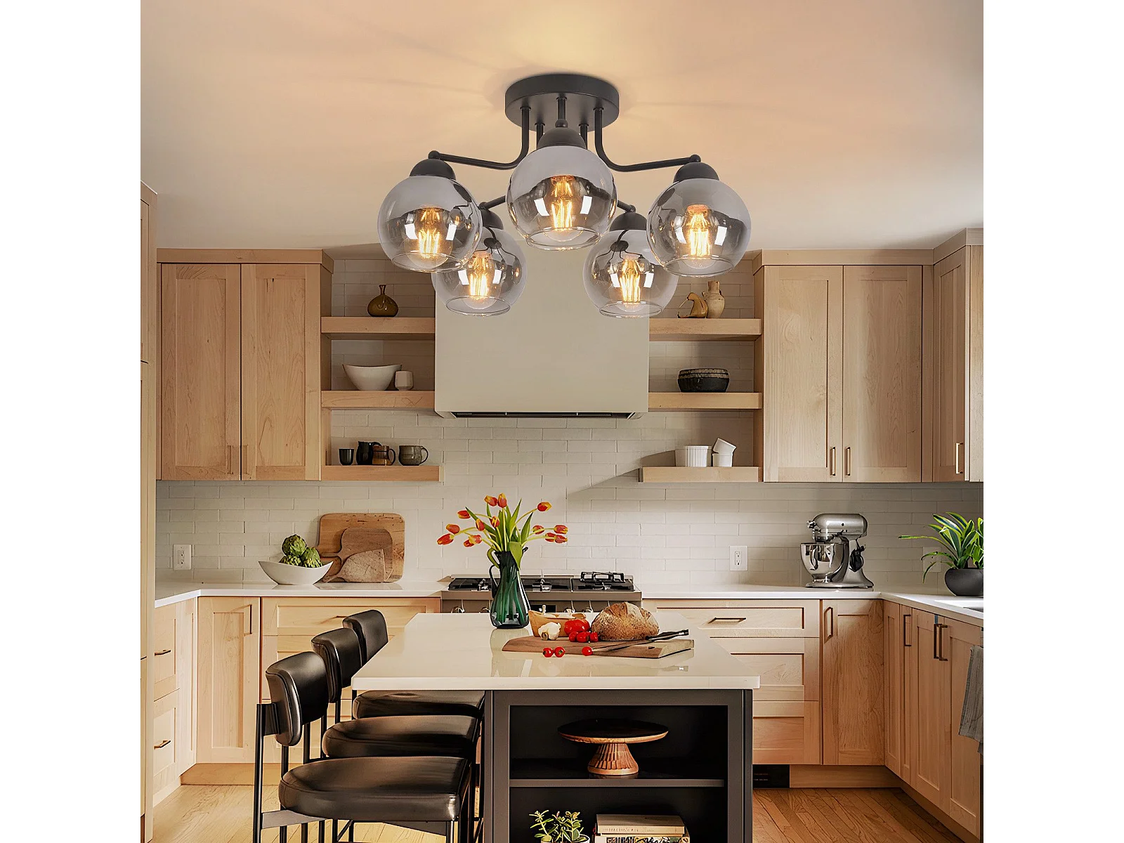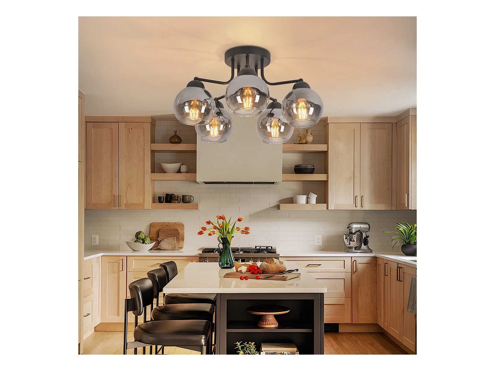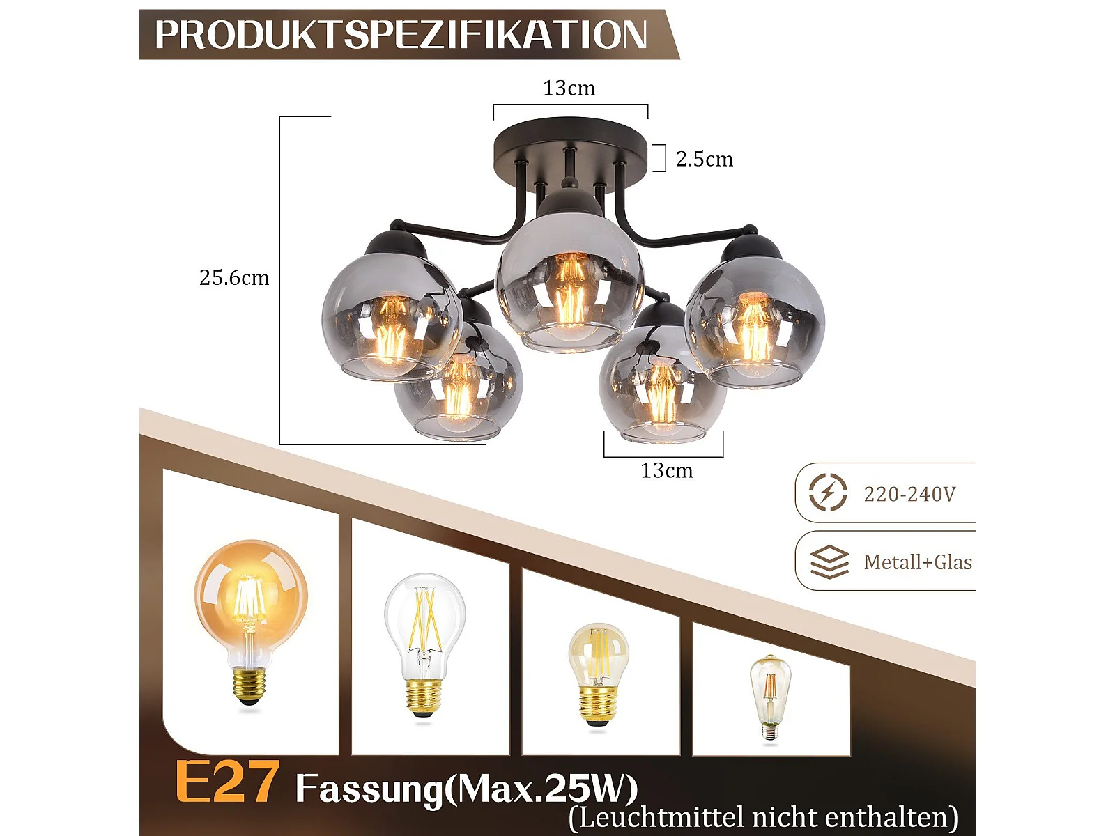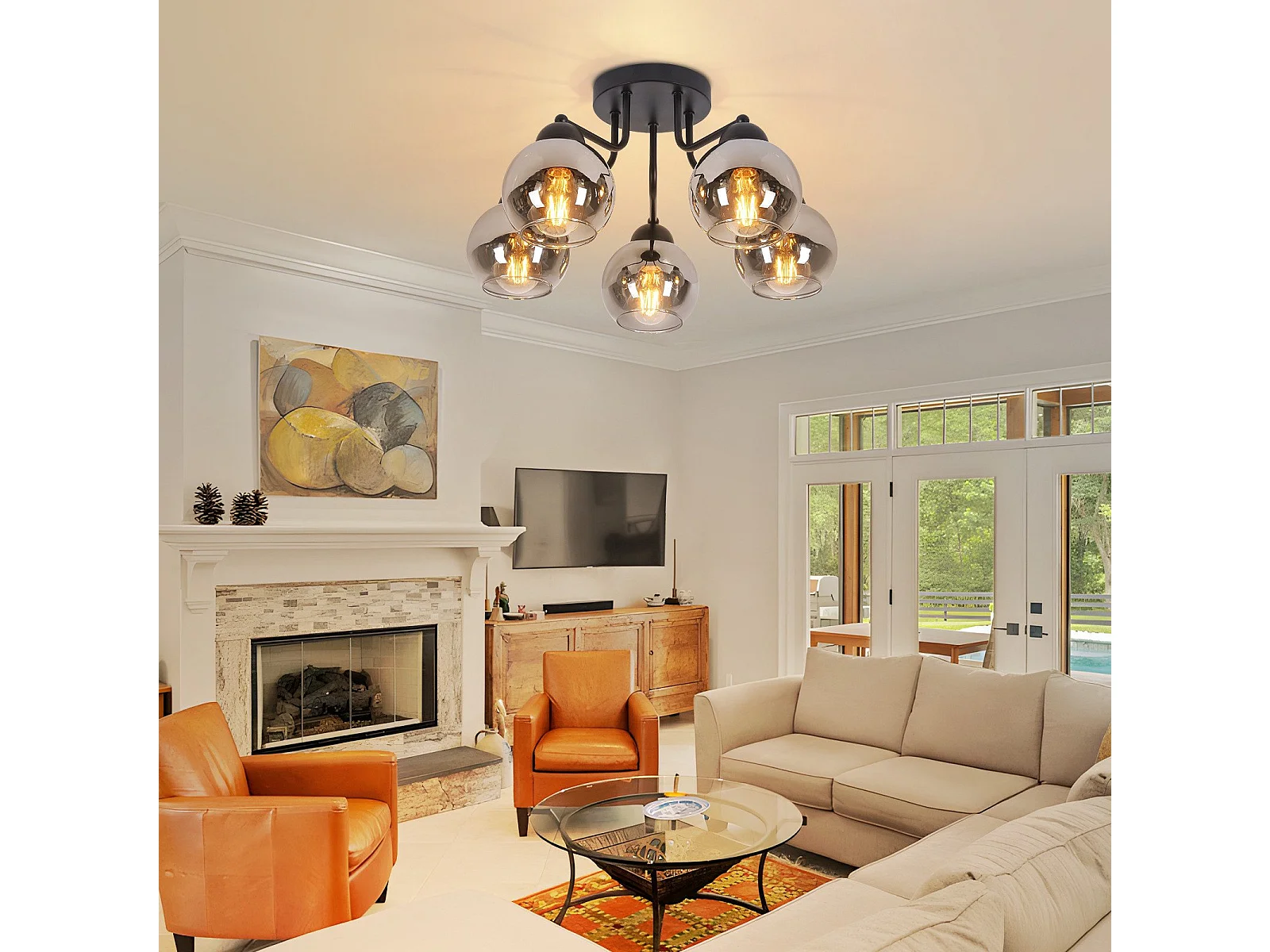Plafonnier NETTLIFE en verre vintage : noir 5 lumières gris fumé en métal E27
