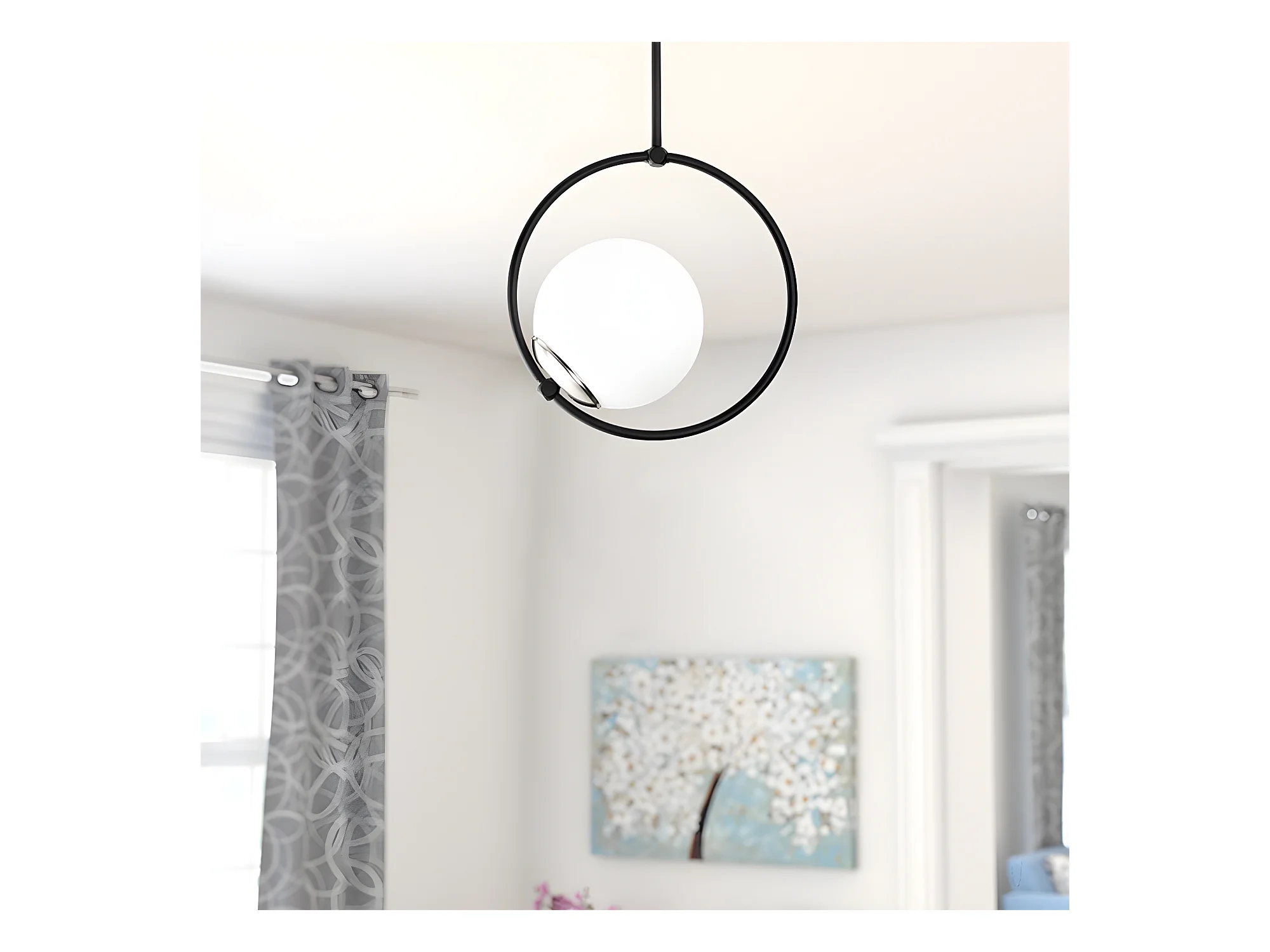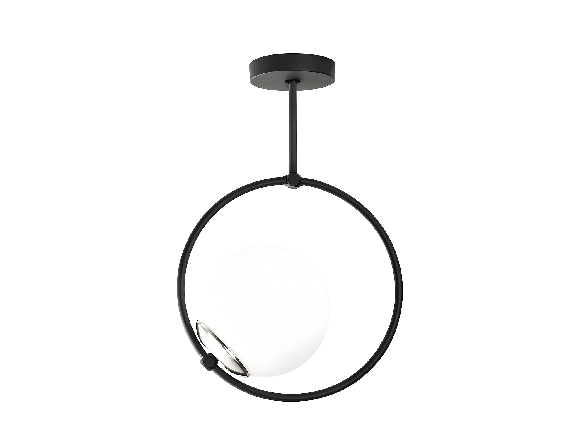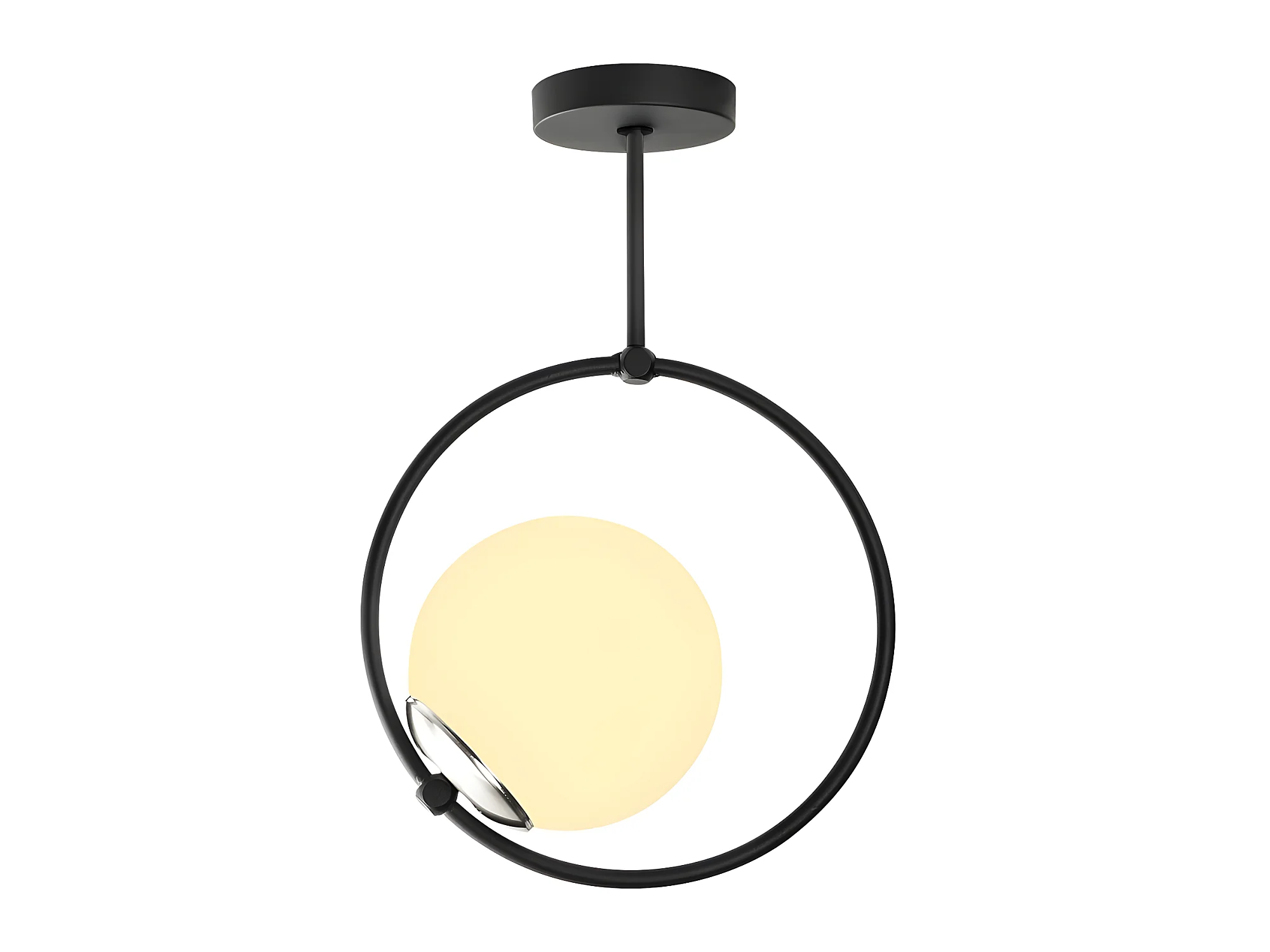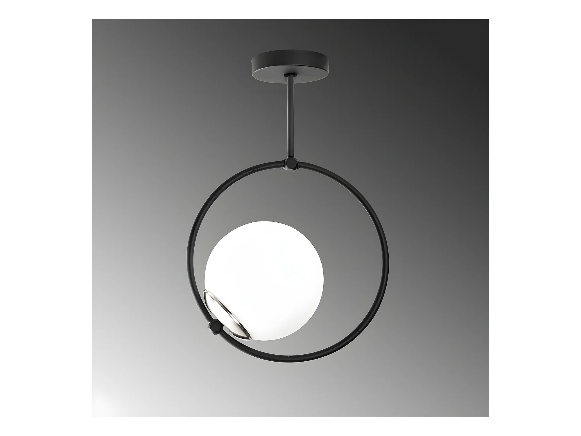 Plafonnier noir Escott en forme d'anneau et sphère en verre 1xE27