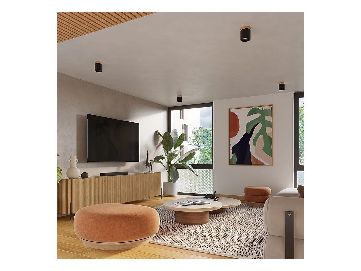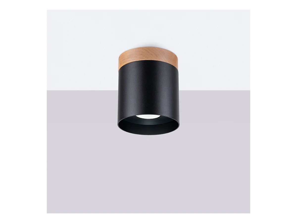 Plafonnier Zyn scandinave en bois/aluminium - 1 sources lumineuses 3000K - L.12 x H.14 cm - noir/bois naturel