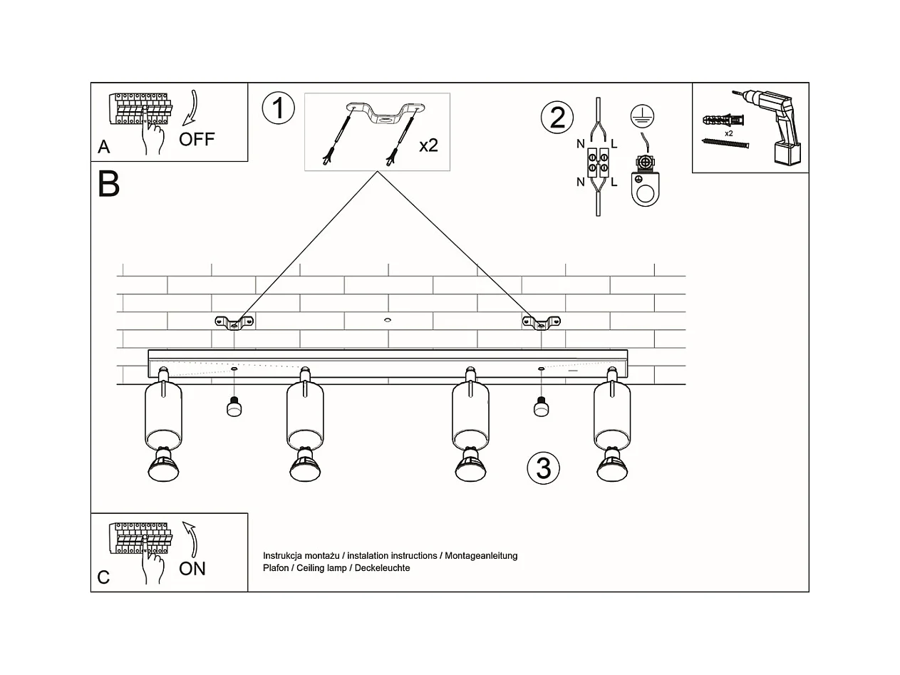 Plafonniers Briix moderne en acier - 4 sources lumineuses 4000K - L.80 x H.16 cm - blanc