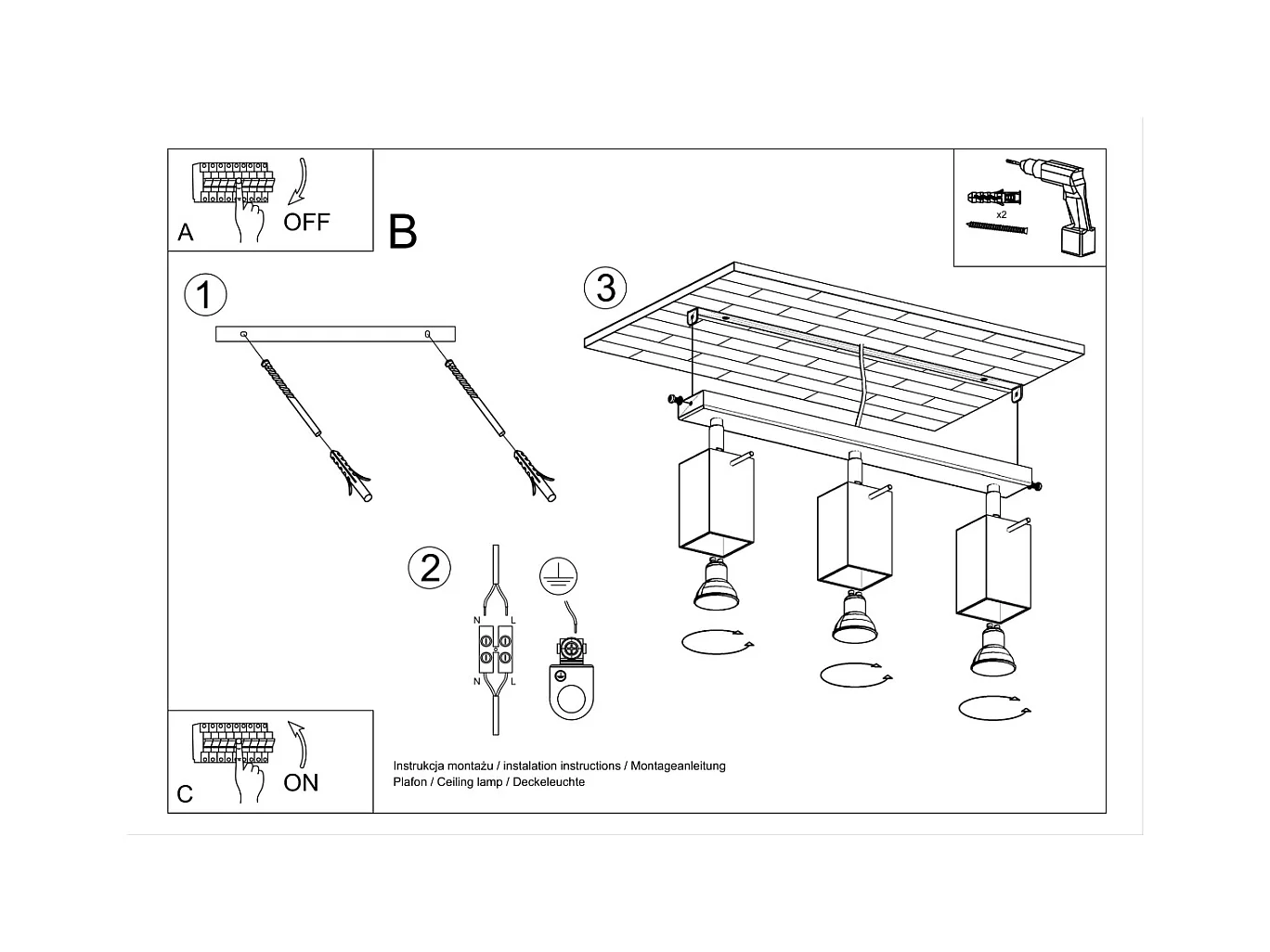 Plafonniers Briow moderne en acier - 3 sources lumineuses 3000K - L.45 x H.16 cm - noir