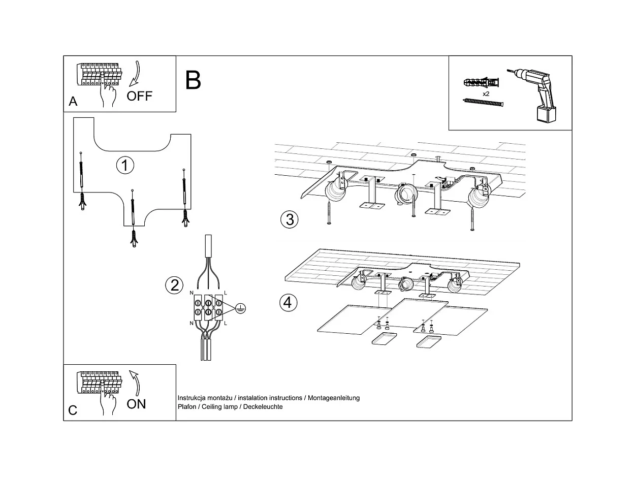 Plafonniers Briow moderne en acier - 3 sources lumineuses 4000K - L.45 x H.16 cm - gris