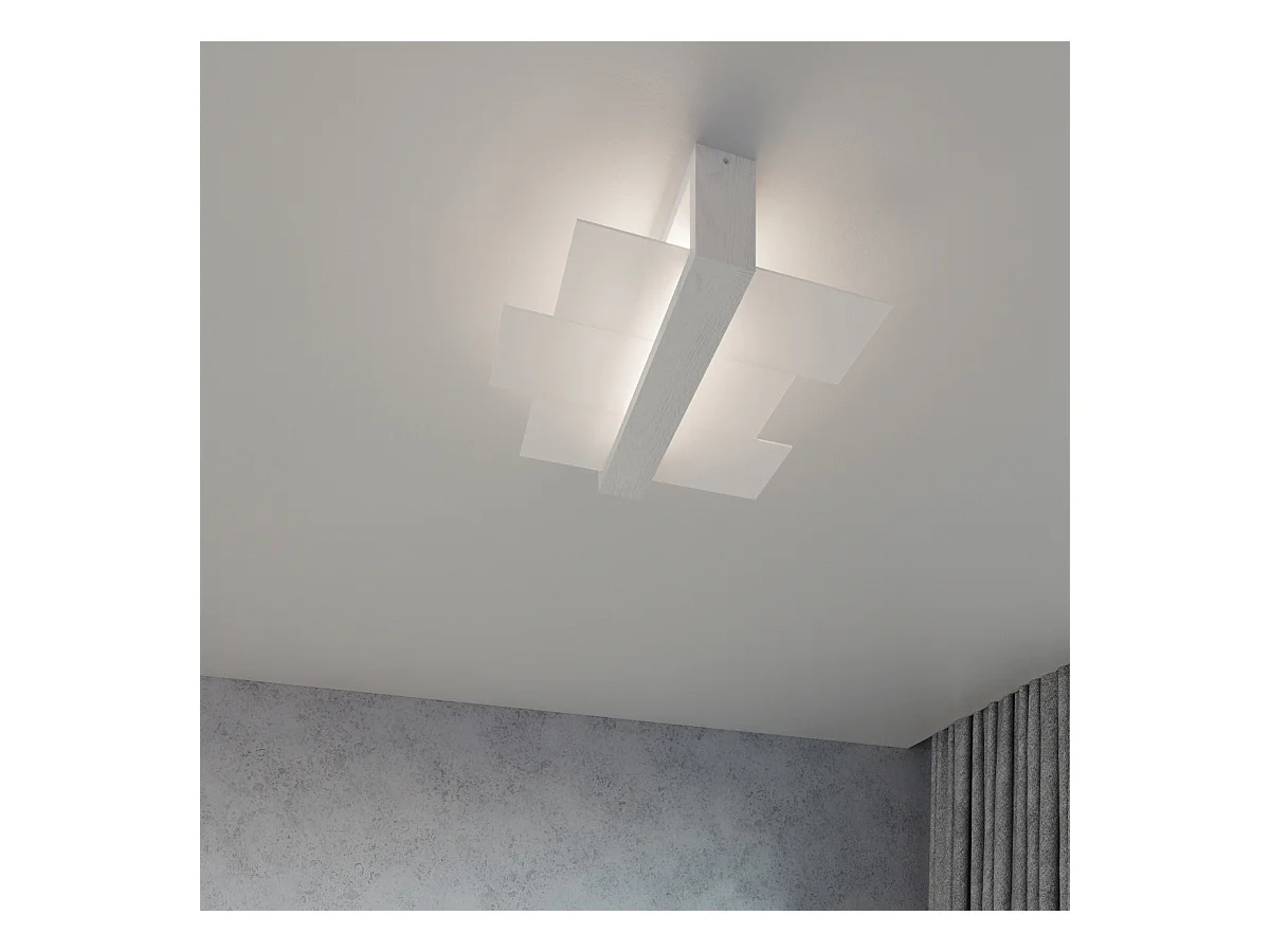 Plafonniers Ignis scandinave en bois/verre - 2 sources lumineuses 4000K - L.43 x H.12 cm - blanc