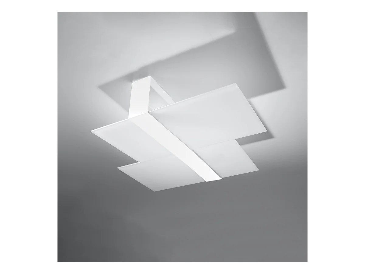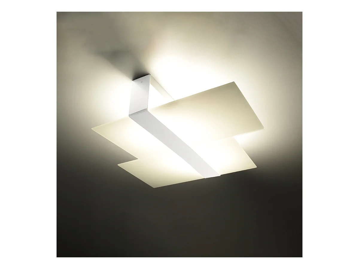 Plafonniers Verre moderne en acier/verre - 2 sources lumineuses 4000K - L.65 x H.11 cm - blanc