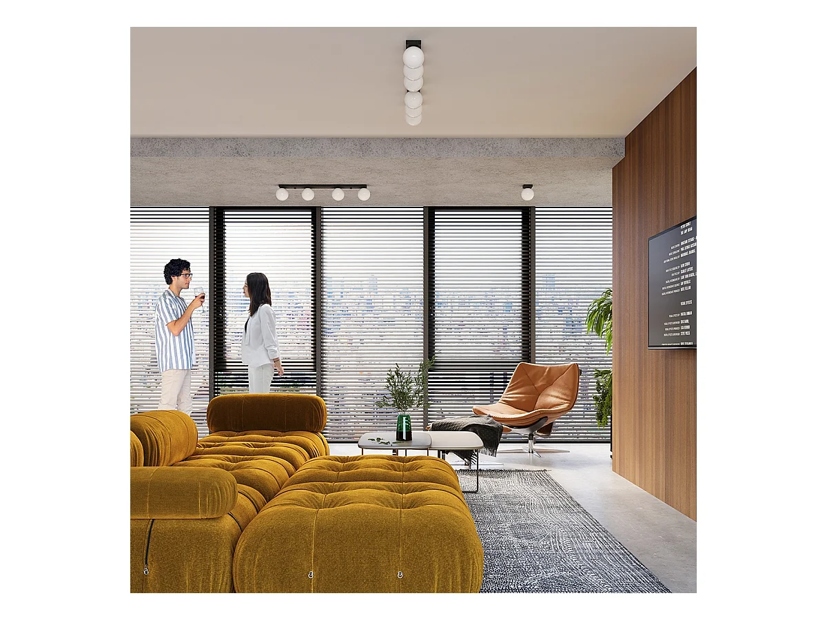 Plafonniers Zynfi moderne en acier/verre - 6 sources lumineuses 3000K - L.120 x H.14,5 cm - noir
