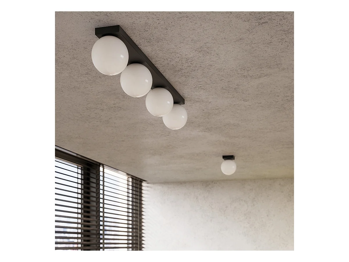 Plafonniers Zynfi moderne en acier/verre - 4 sources lumineuses 4000K - L.88 x H.14,5 cm - noir