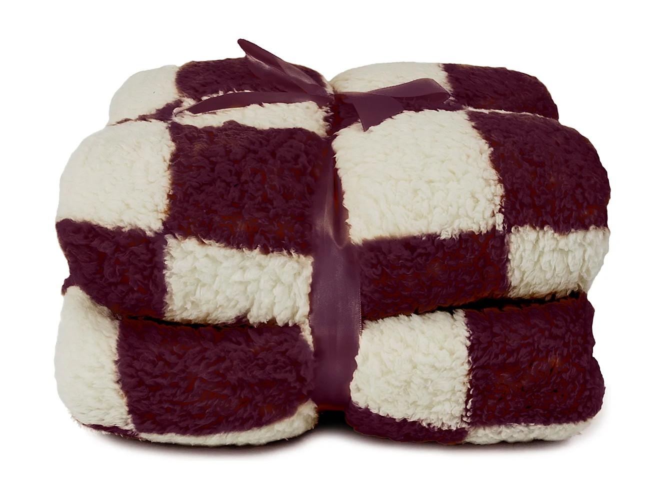 Plaid à carreaux 150x200cm - Blanc tourterelle/Violet foncé