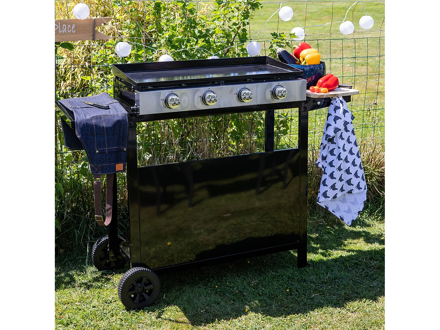 Plancha au gaz MÉRIDA 4 brûleurs + chariot - HAPPY GARDEN