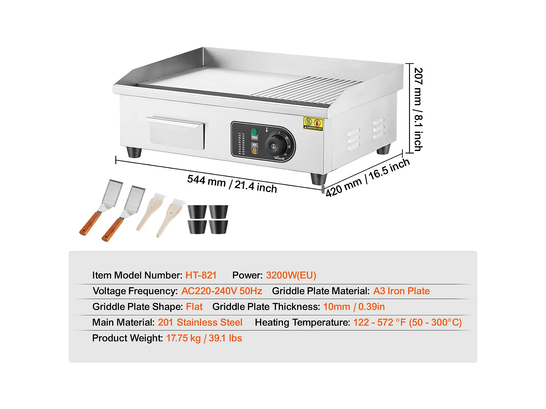 3000W 21" Gril Électrique Commercial SucceBuy, Gril Plat, Plaque Chauffante