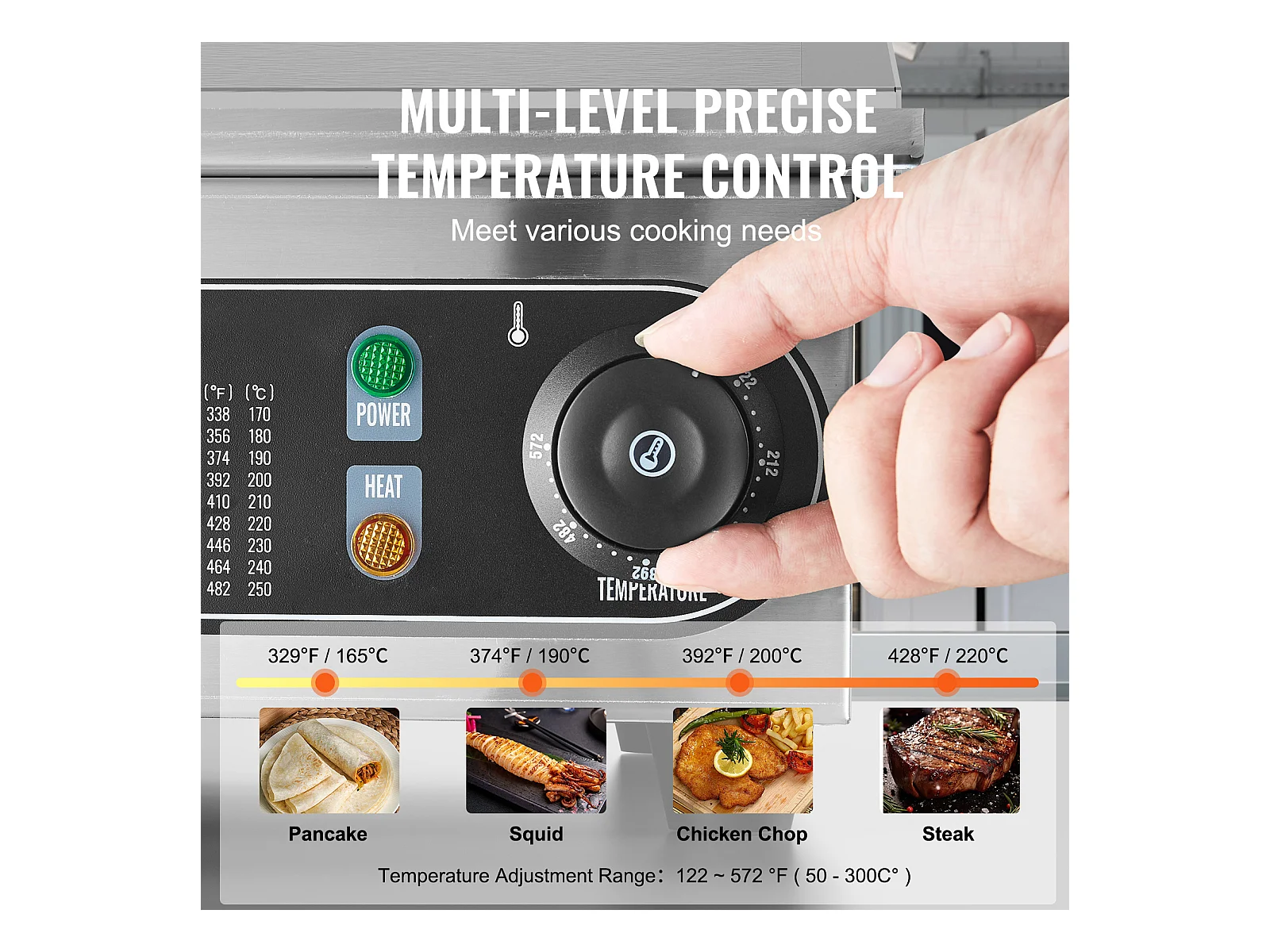 Plancha Électrique SucceBuy 4400 W, Plaque de Cuisson Électrique Commerciale à Surface Plane, 122 ℉-572 ℉
