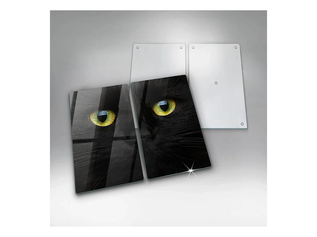 Planche de cuisine rectangulaire en verre, 2 pièces 30x52 cm Yeux de chat animaux