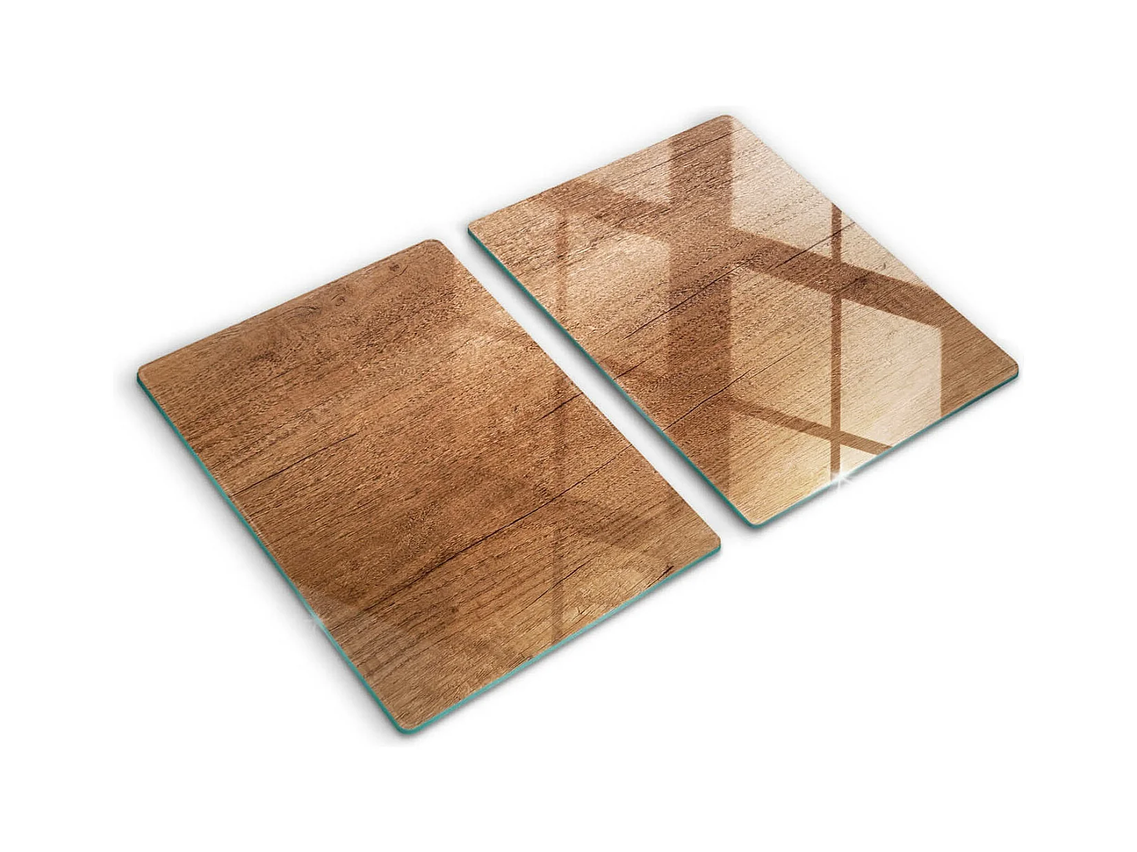 Planche de cuisine rectangulaire en verre, 2 pièces 40x52 cm Texture bois