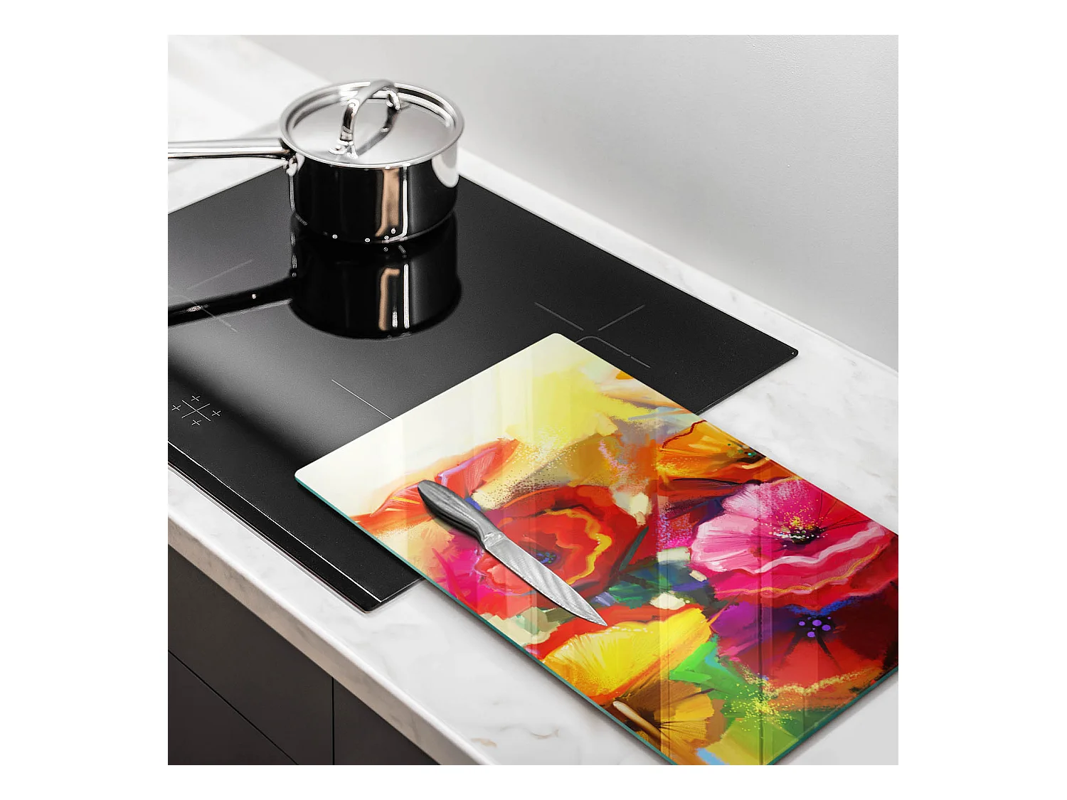 Planche de cuisine rectangulaire en verre, 30x52 cm Fleurs colorées peintes
