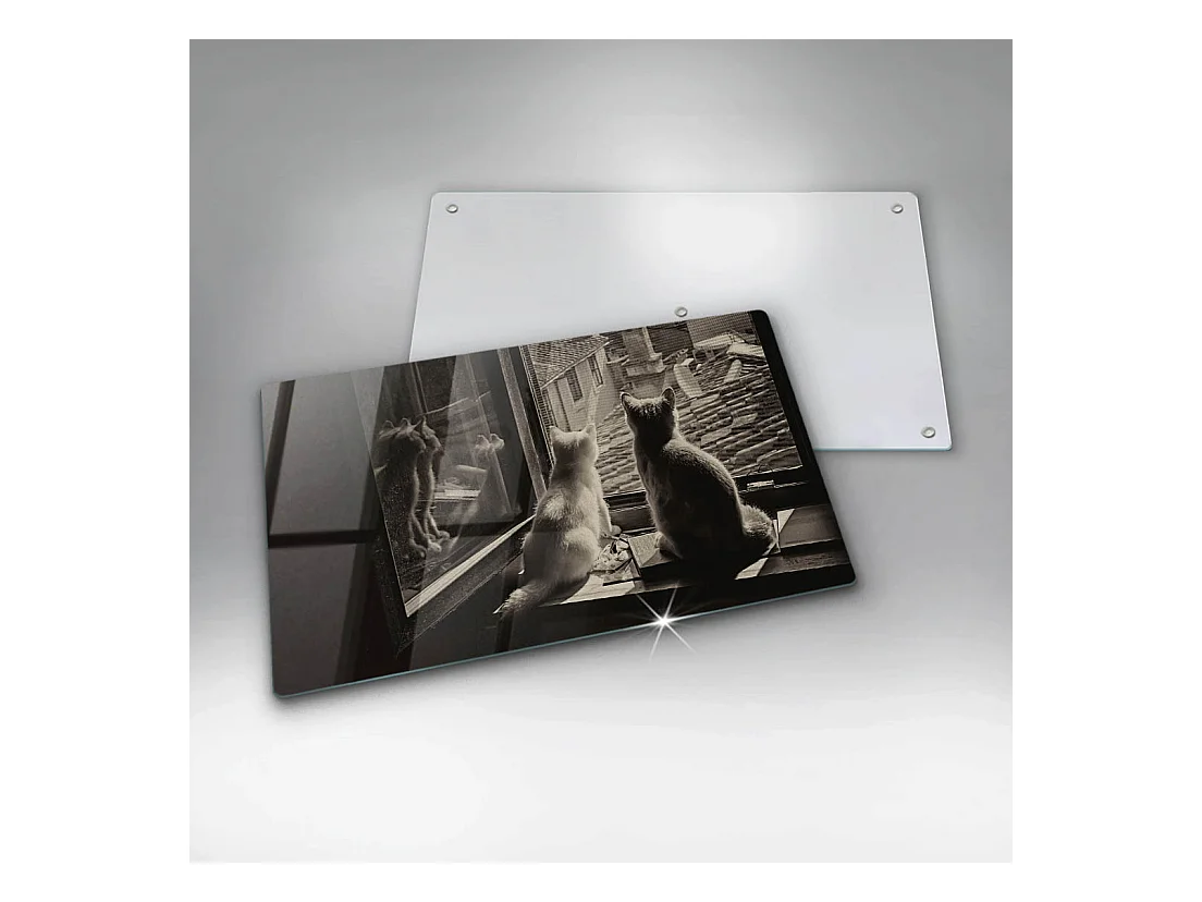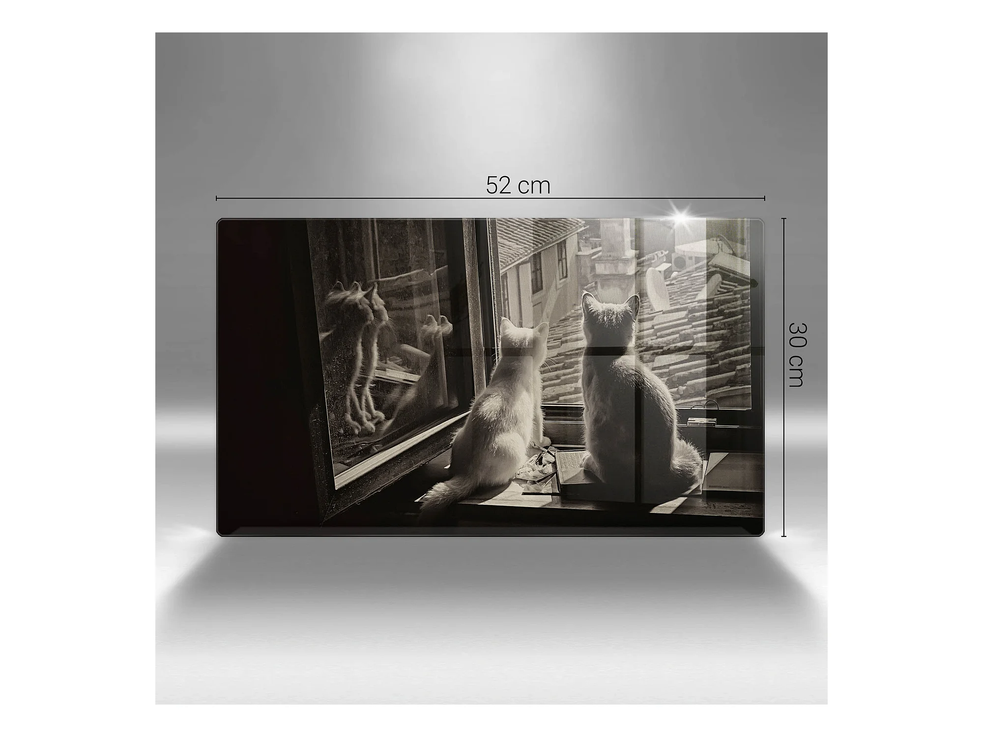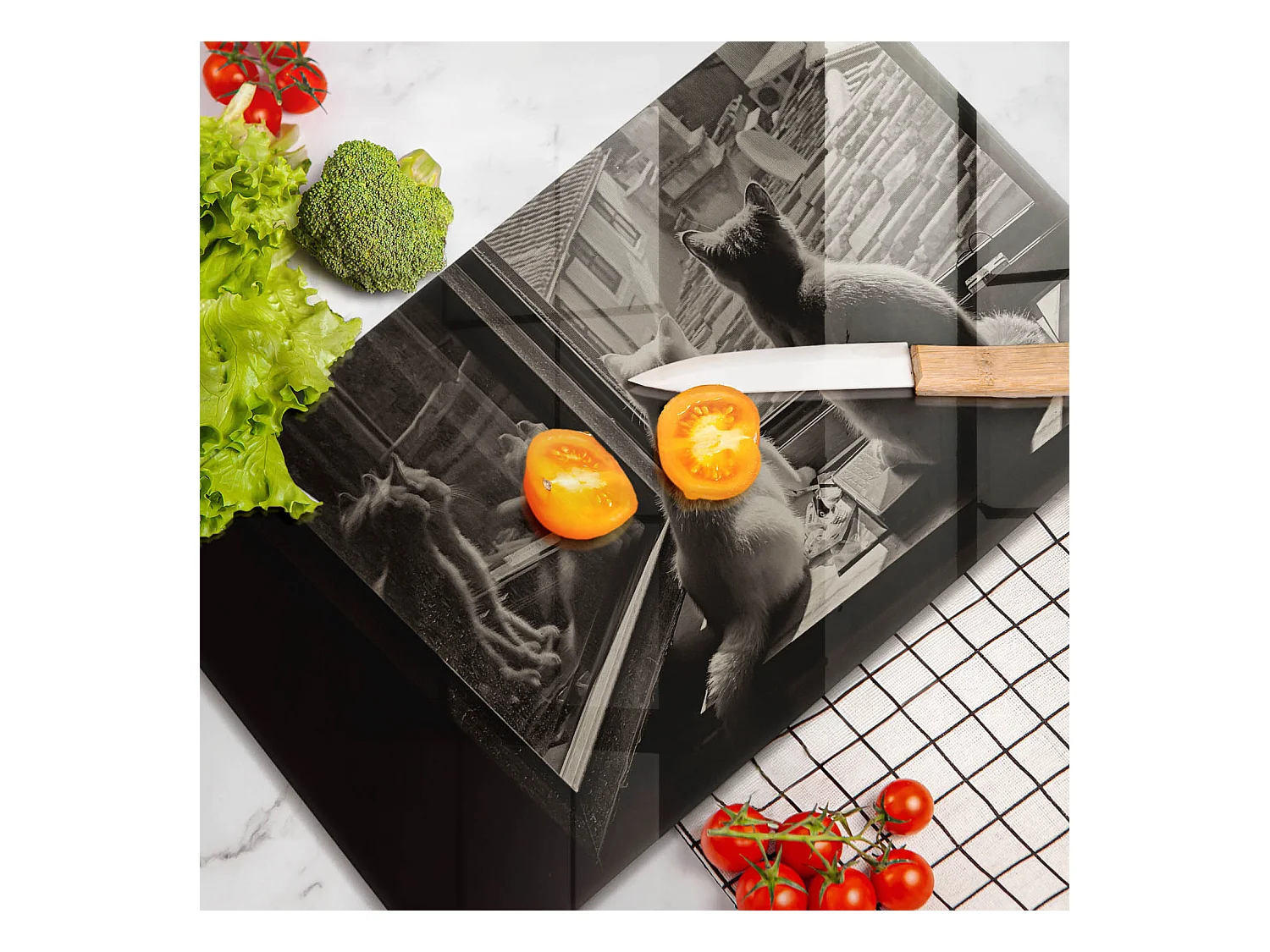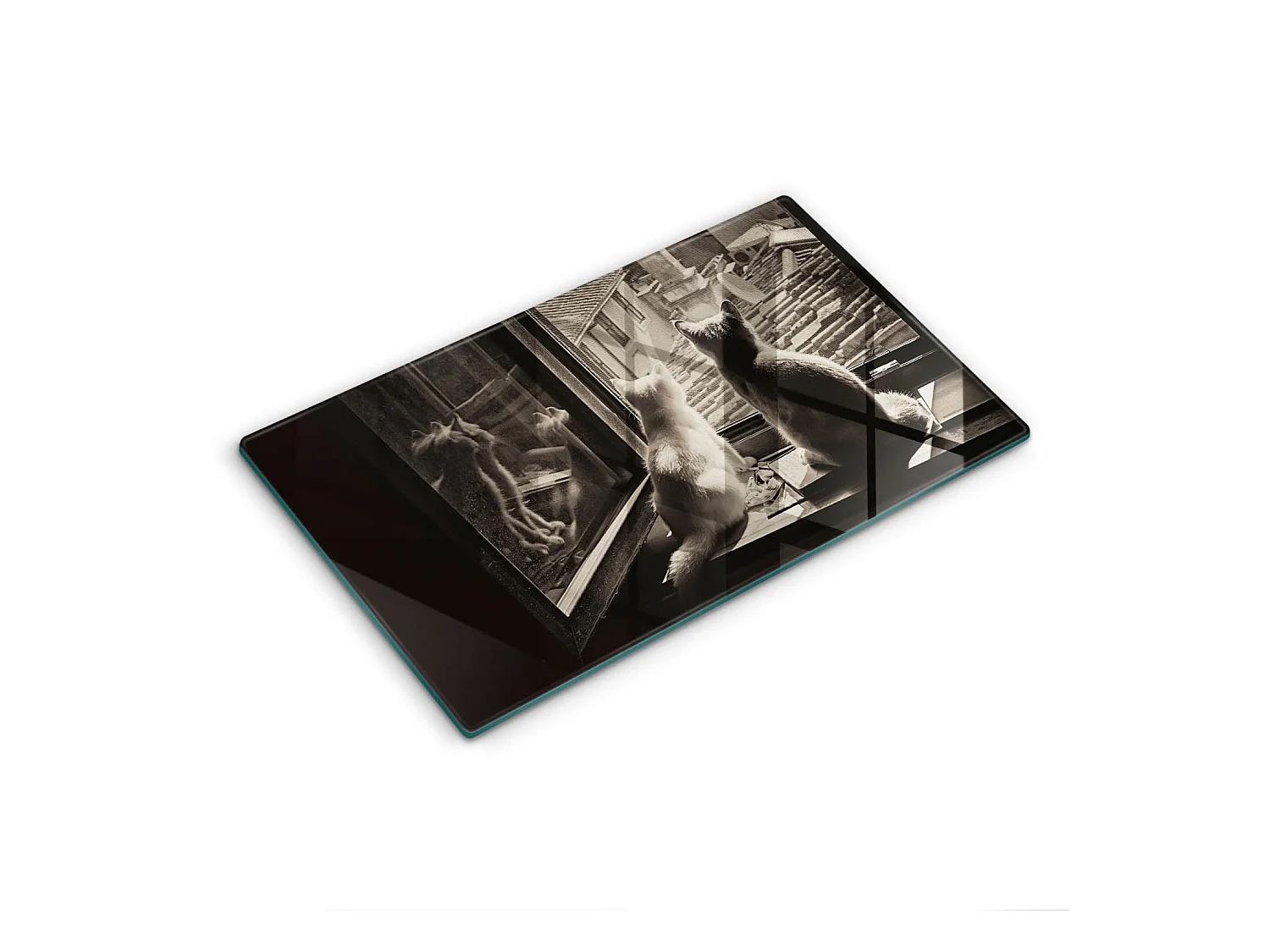 Planche de cuisine rectangulaire en verre, 52x30 cm Chats ville et fenêtre