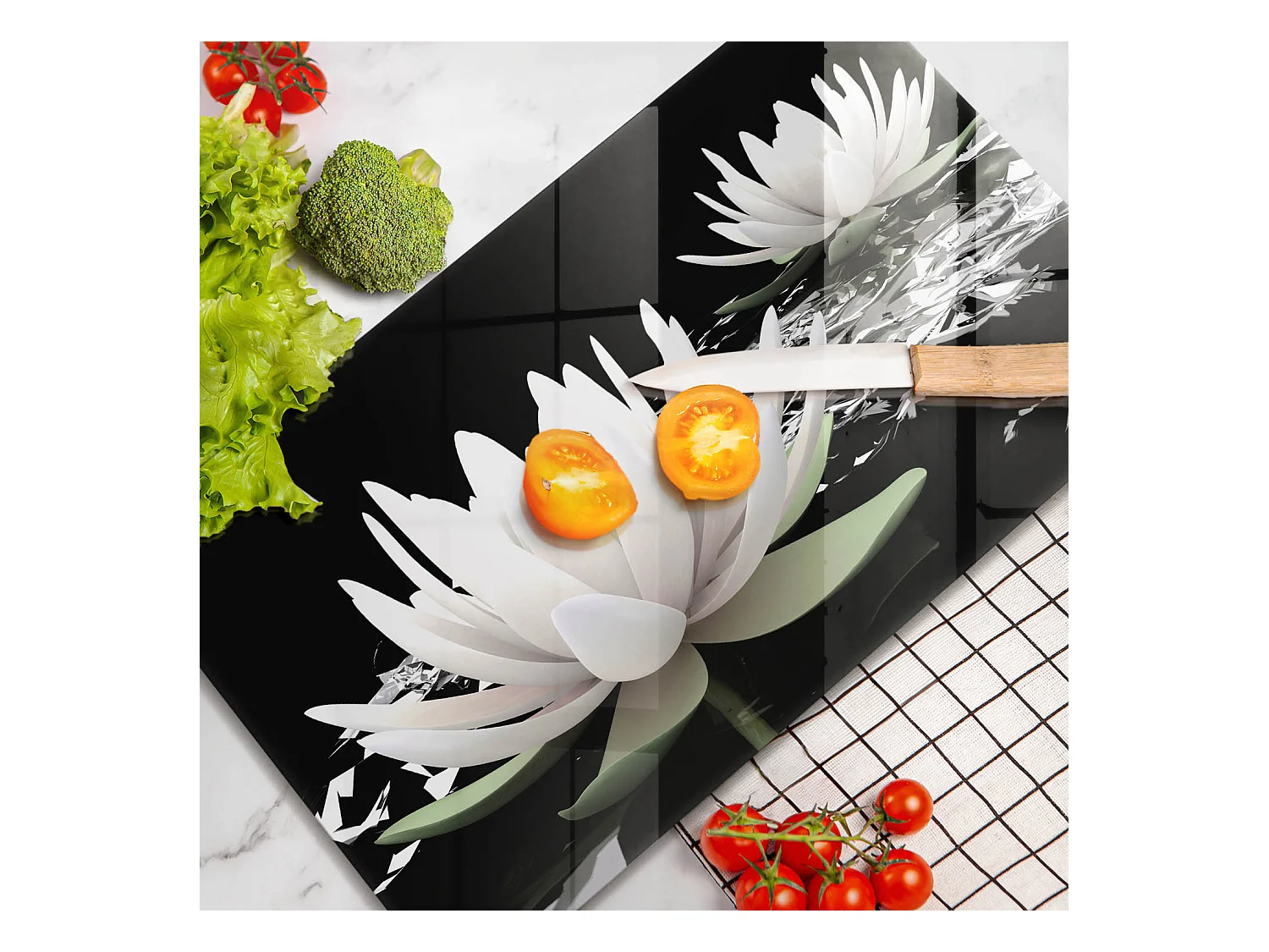 Planche de cuisine rectangulaire en verre, 52x30 cm Lys blancs sur l'eau