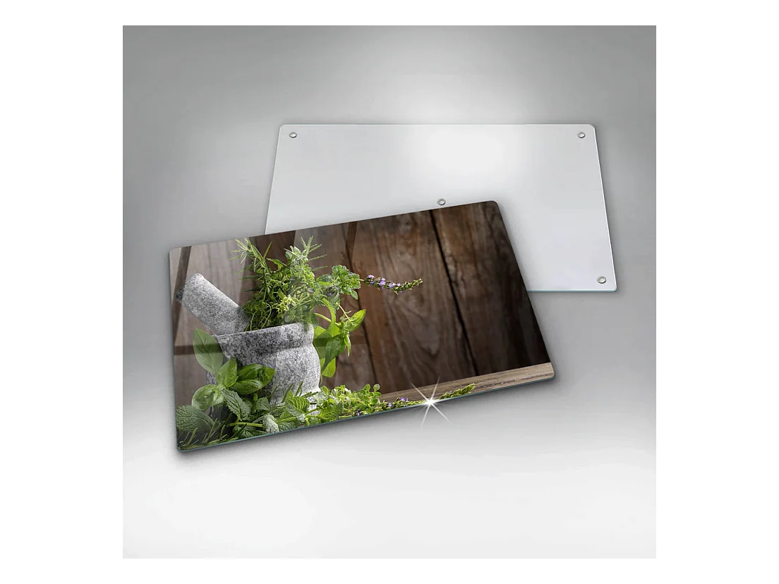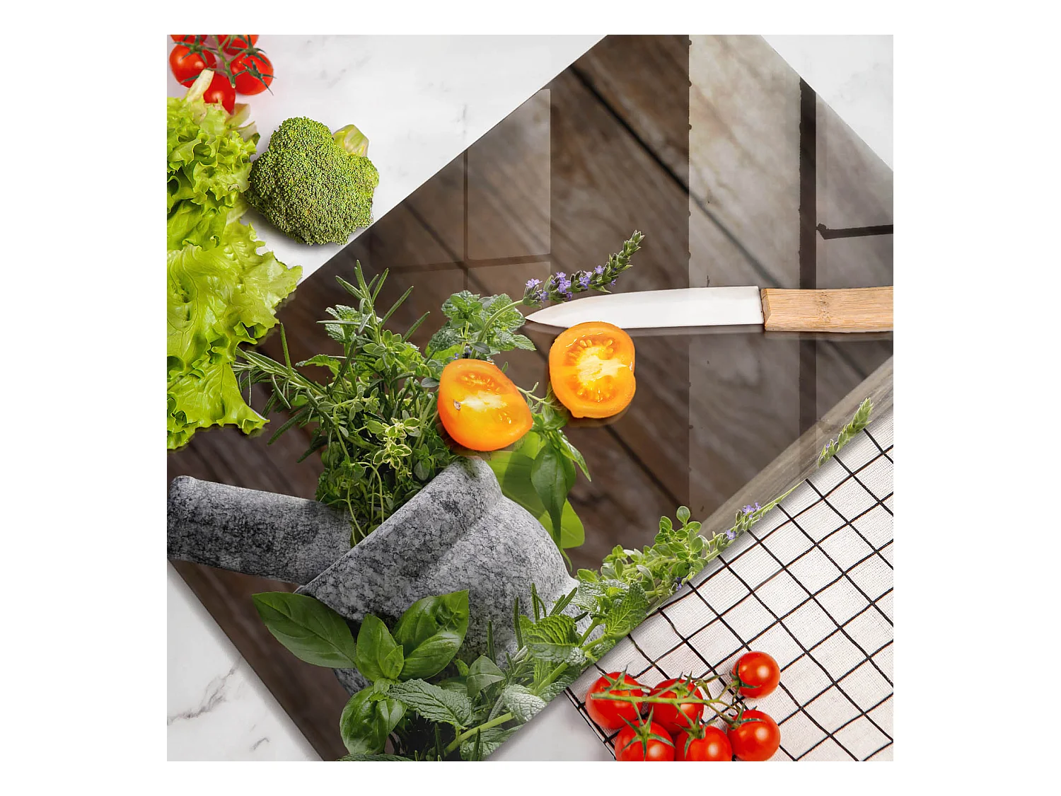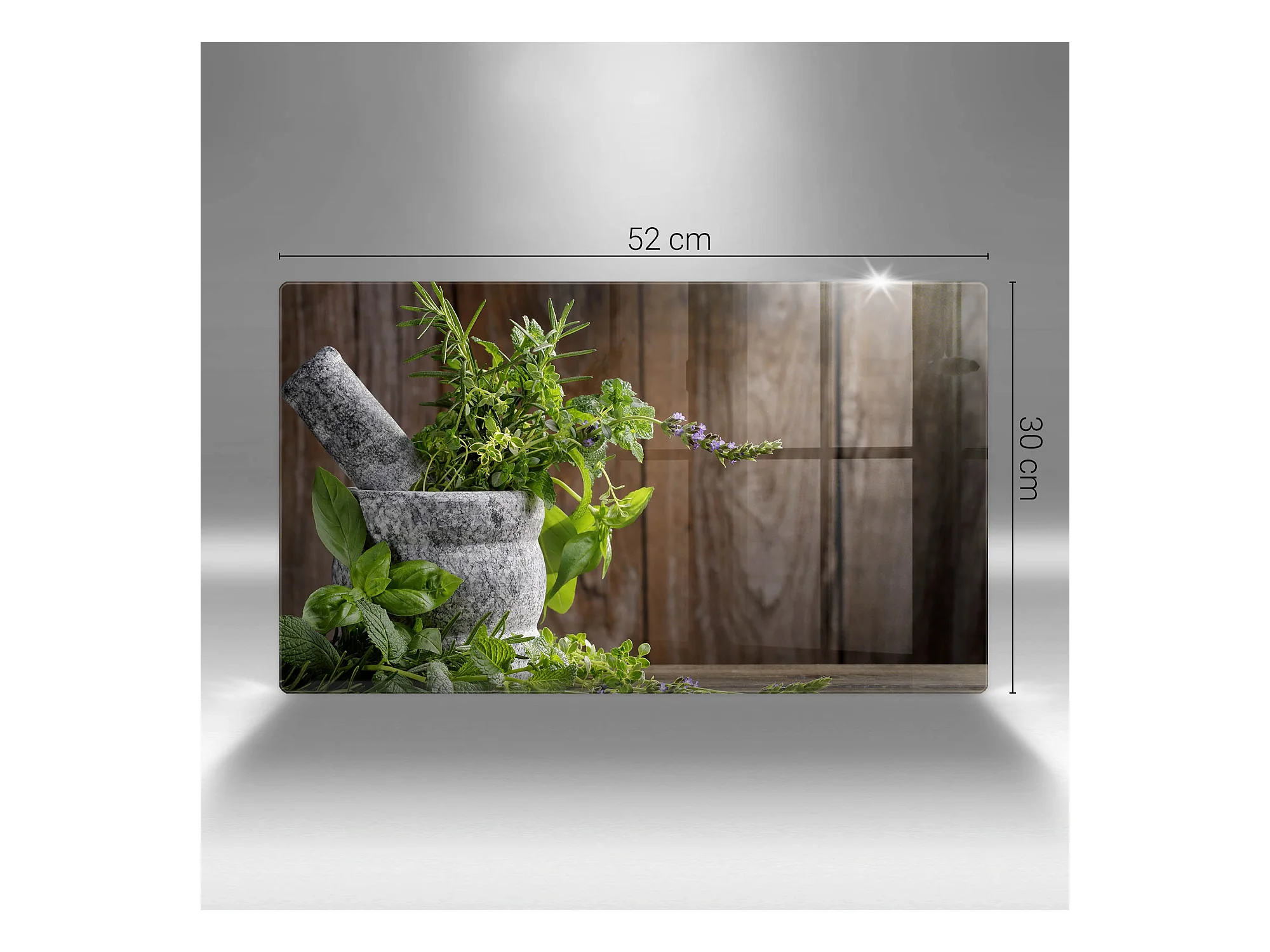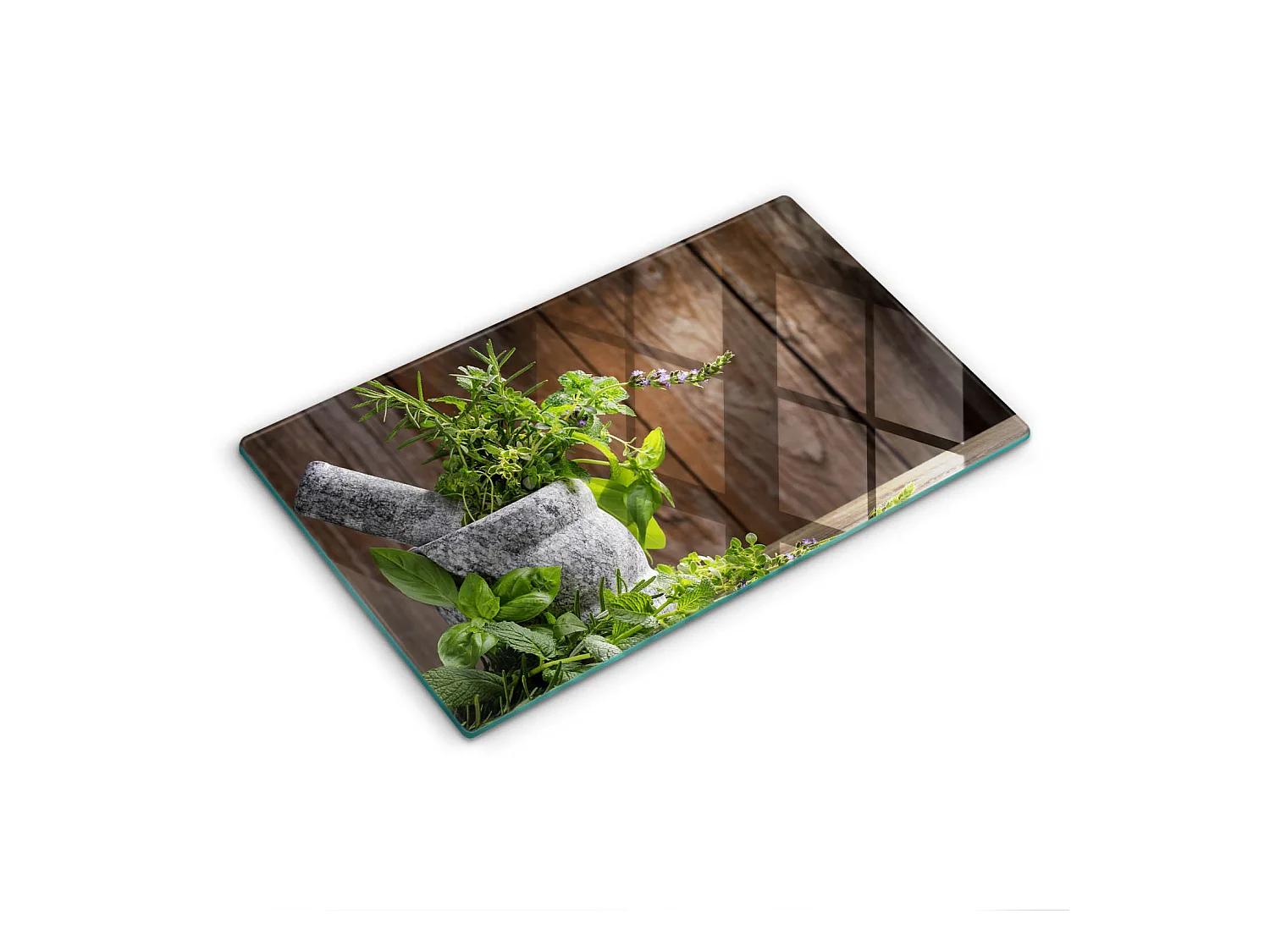 Planche de cuisine rectangulaire en verre, 52x30 cm Plantes, herbes et bois