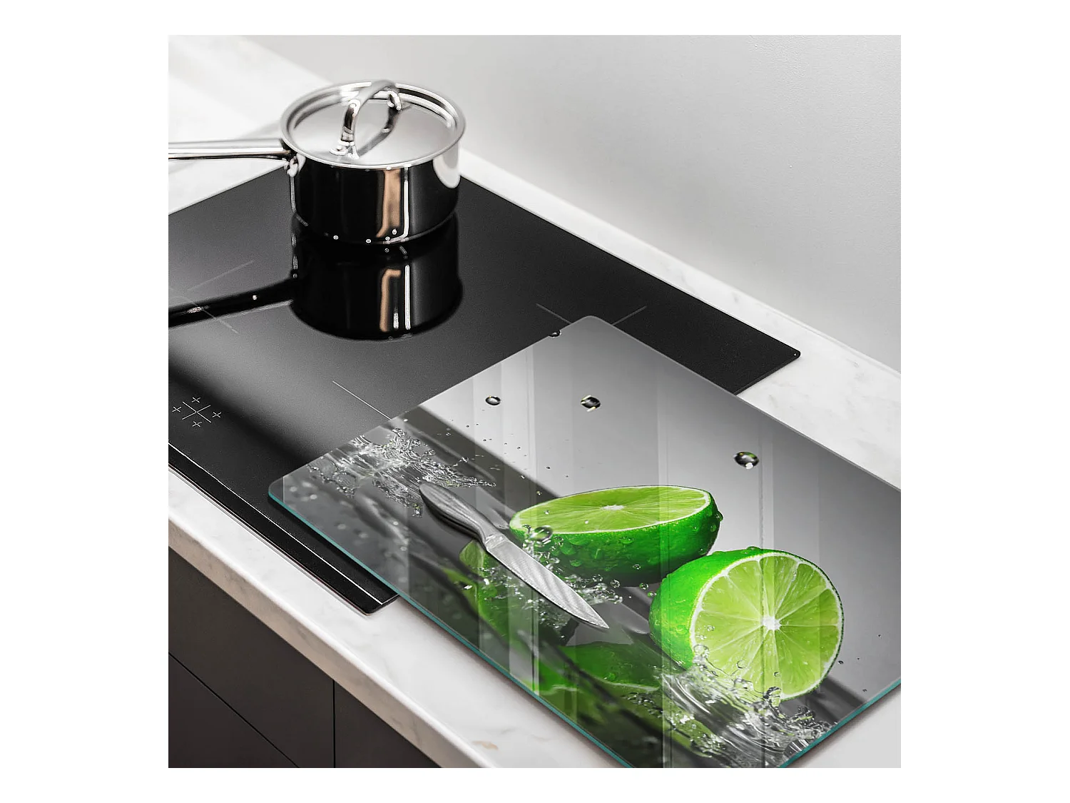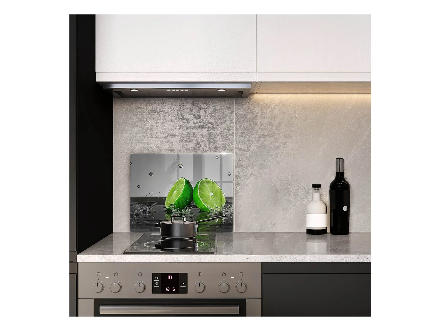 Planche de cuisine rectangulaire en verre, 52x40 cm Citrons verts juteux et eau
