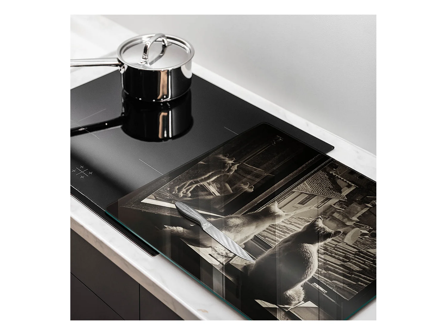 Planche de cuisine rectangulaire en verre, 60x52 cm Chats ville et fenêtre