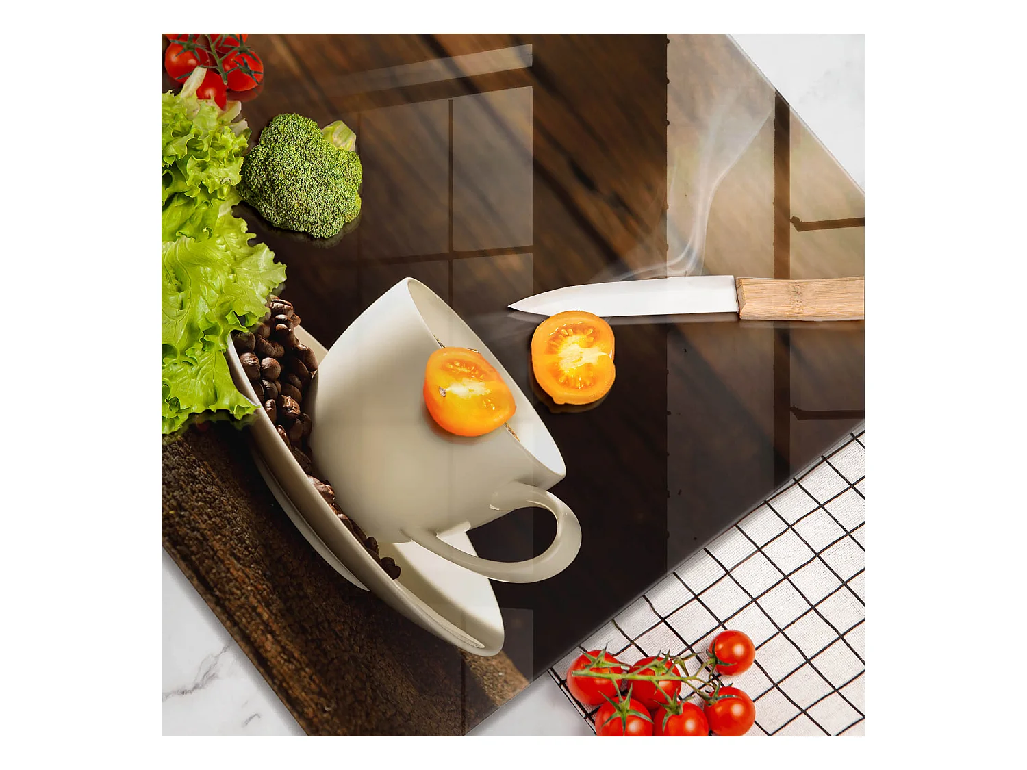 Planche de cuisine rectangulaire en verre, 60x52 cm Tasse à café en bois