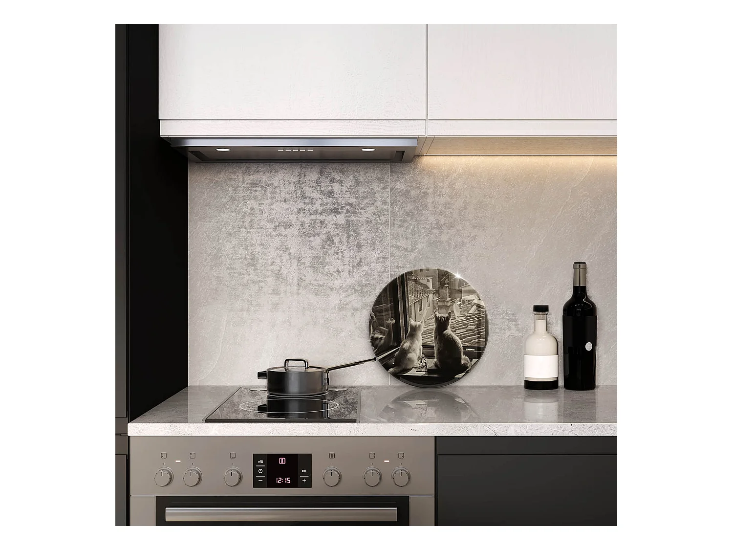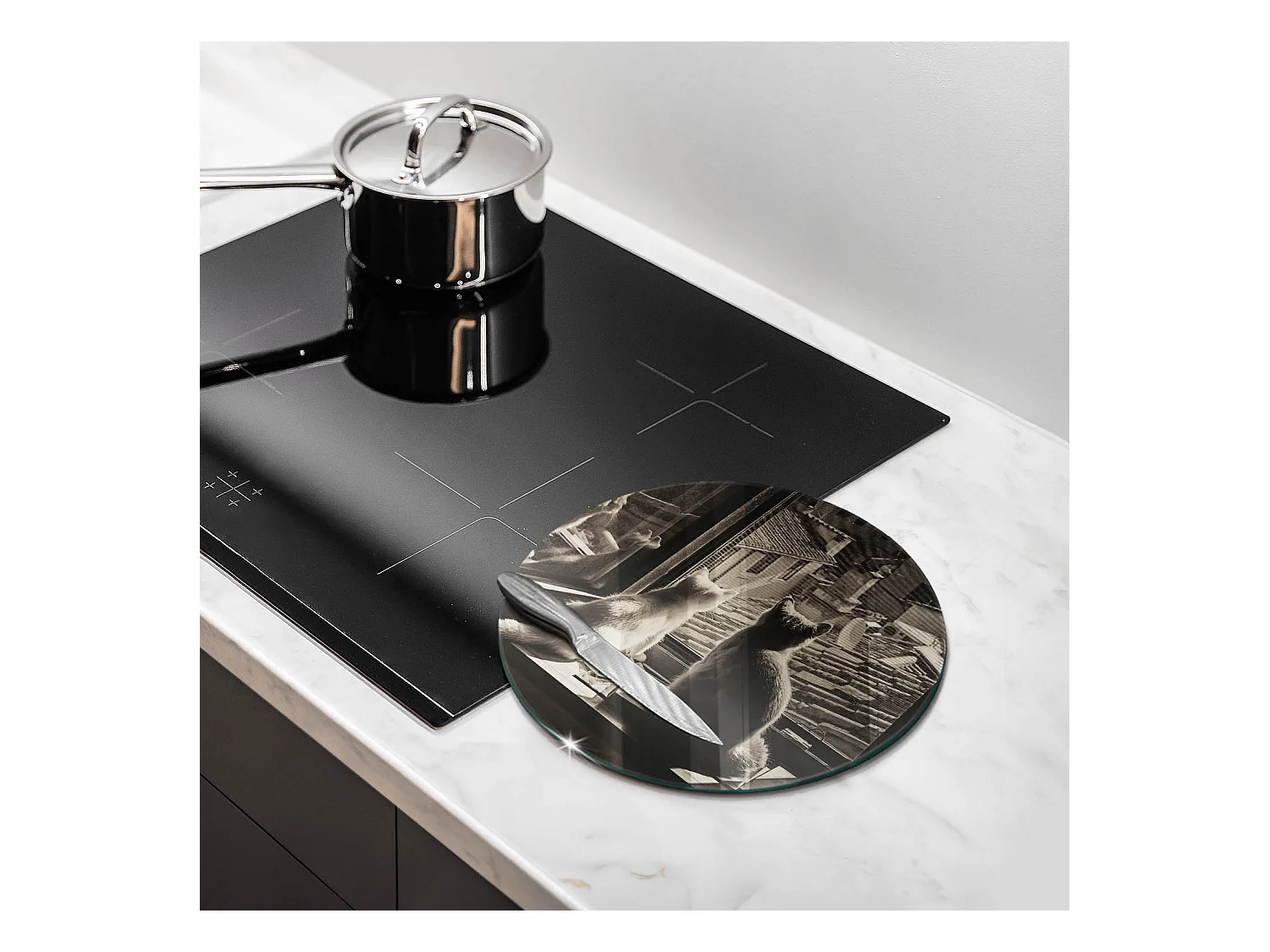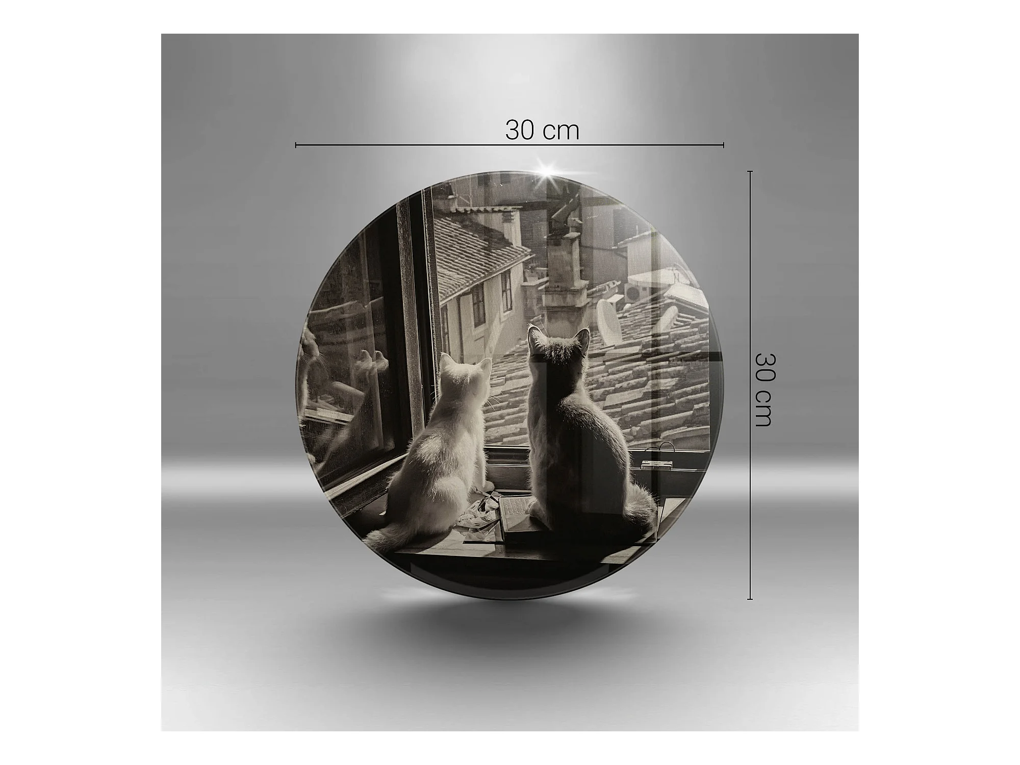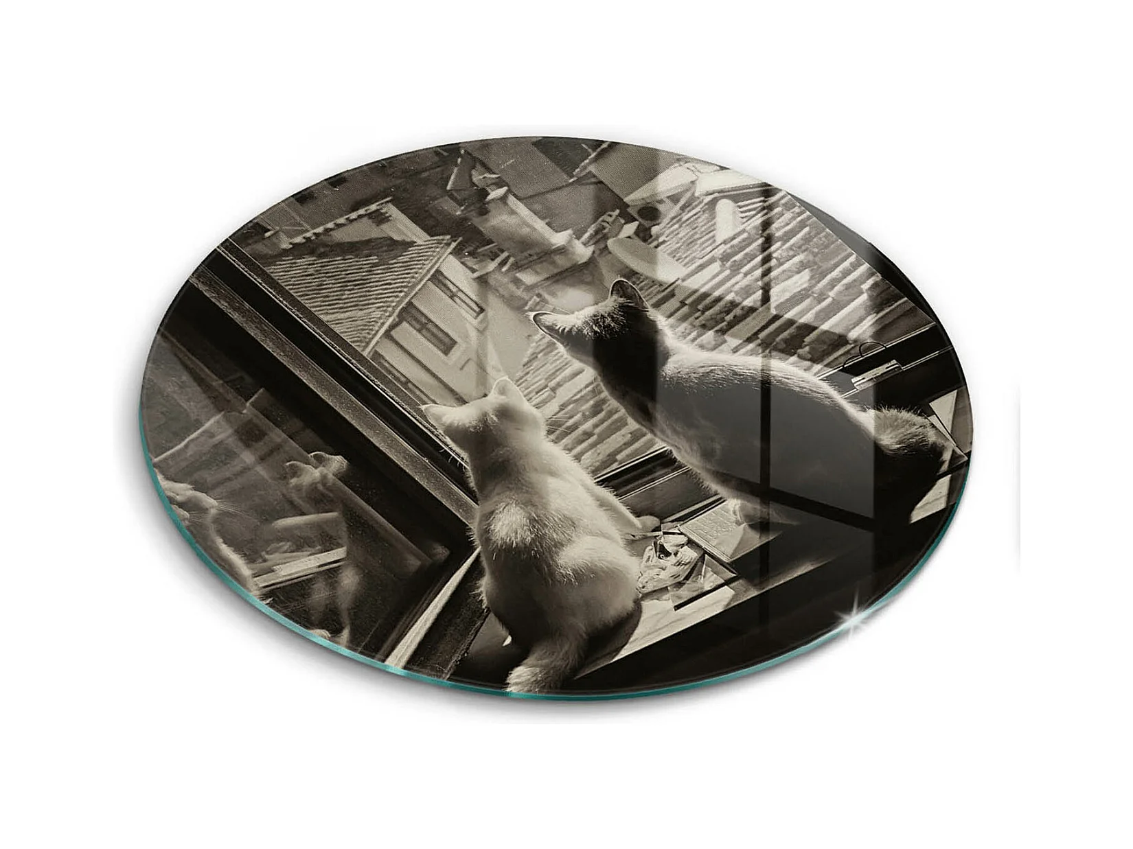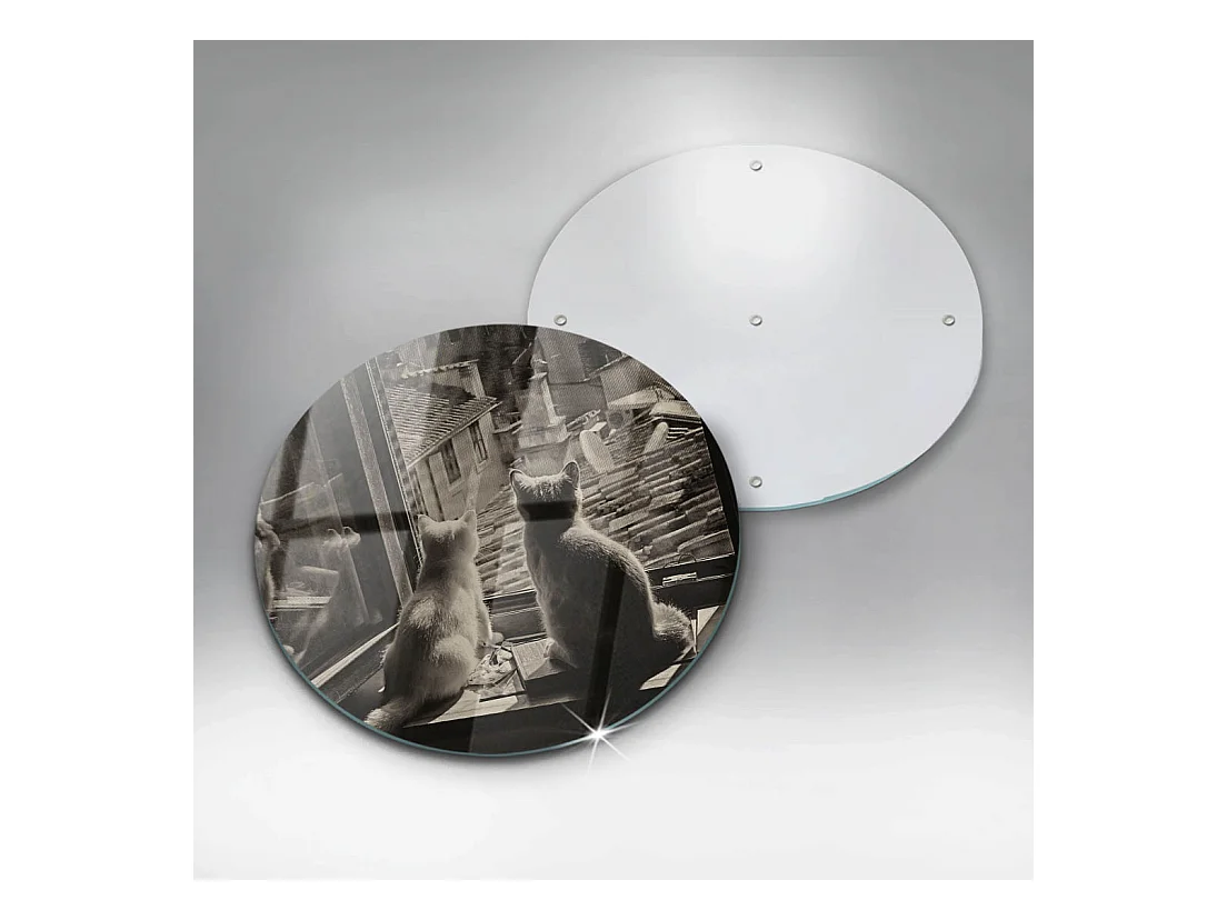 Planche de cuisine ronde en verre 30 cm Chats ville et fenêtre
