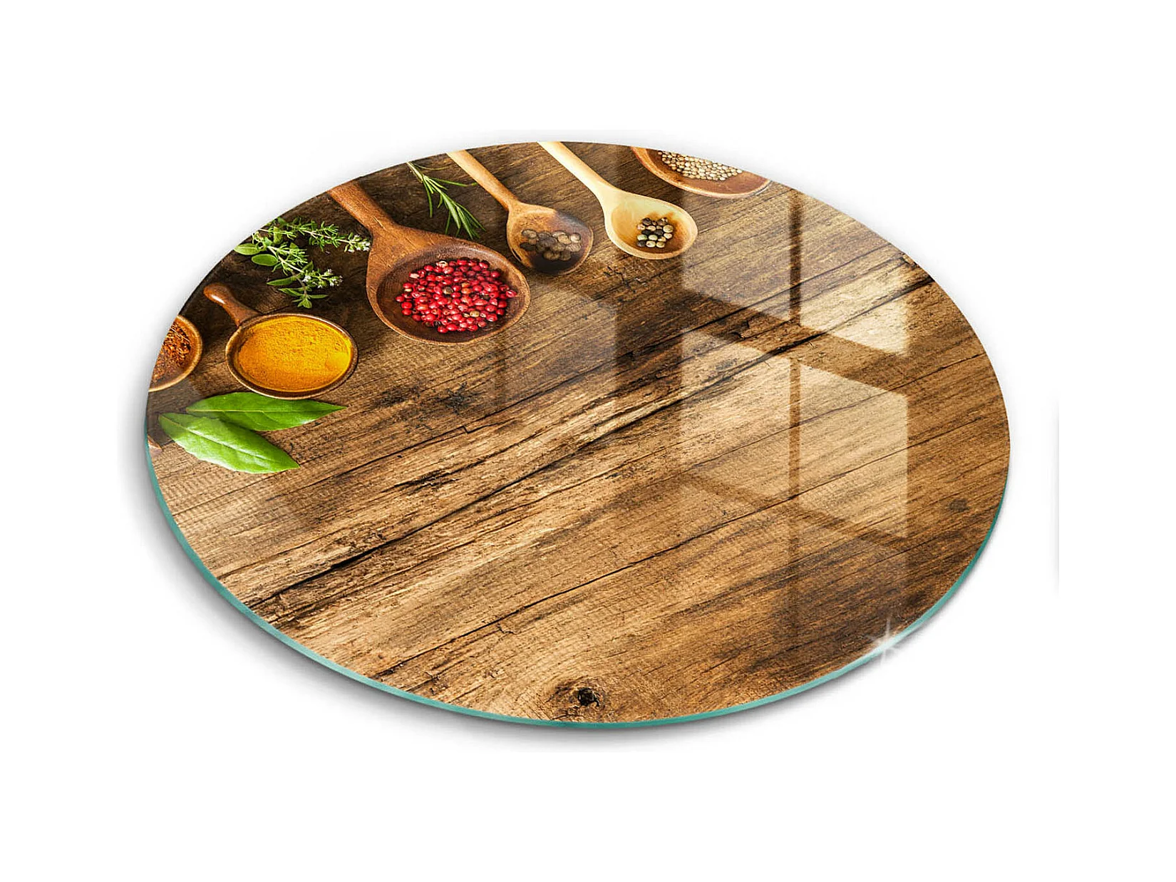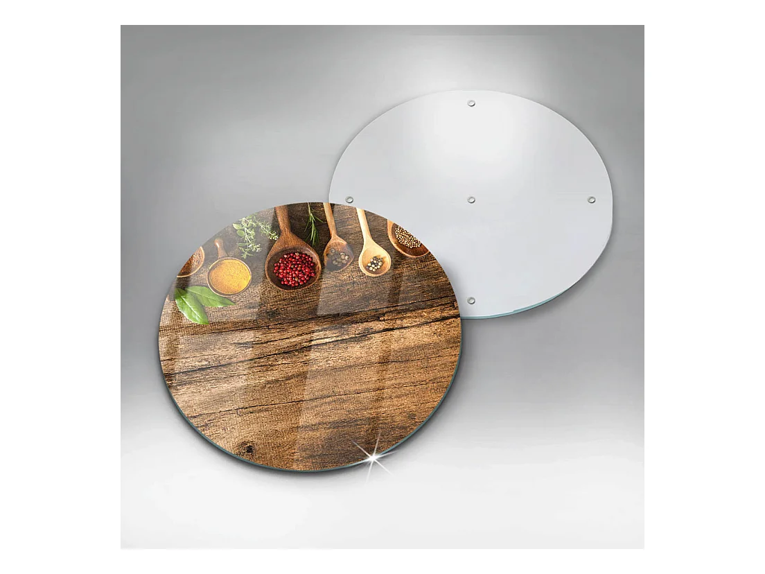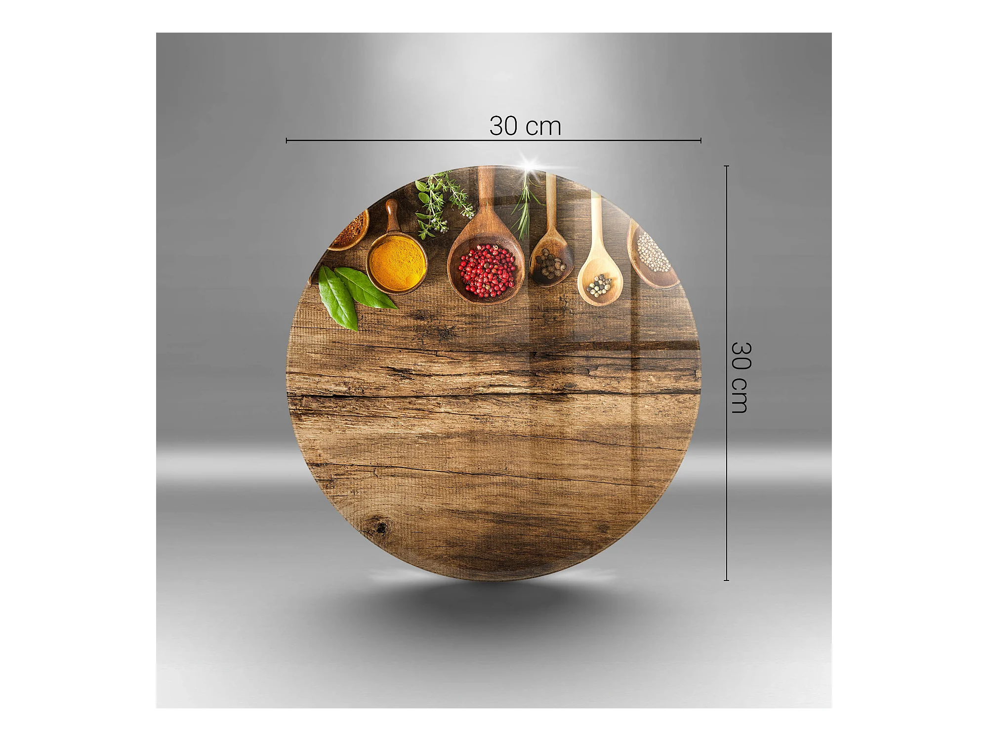 Planche de cuisine ronde en verre, 30 cm Cuillères à épices en bois