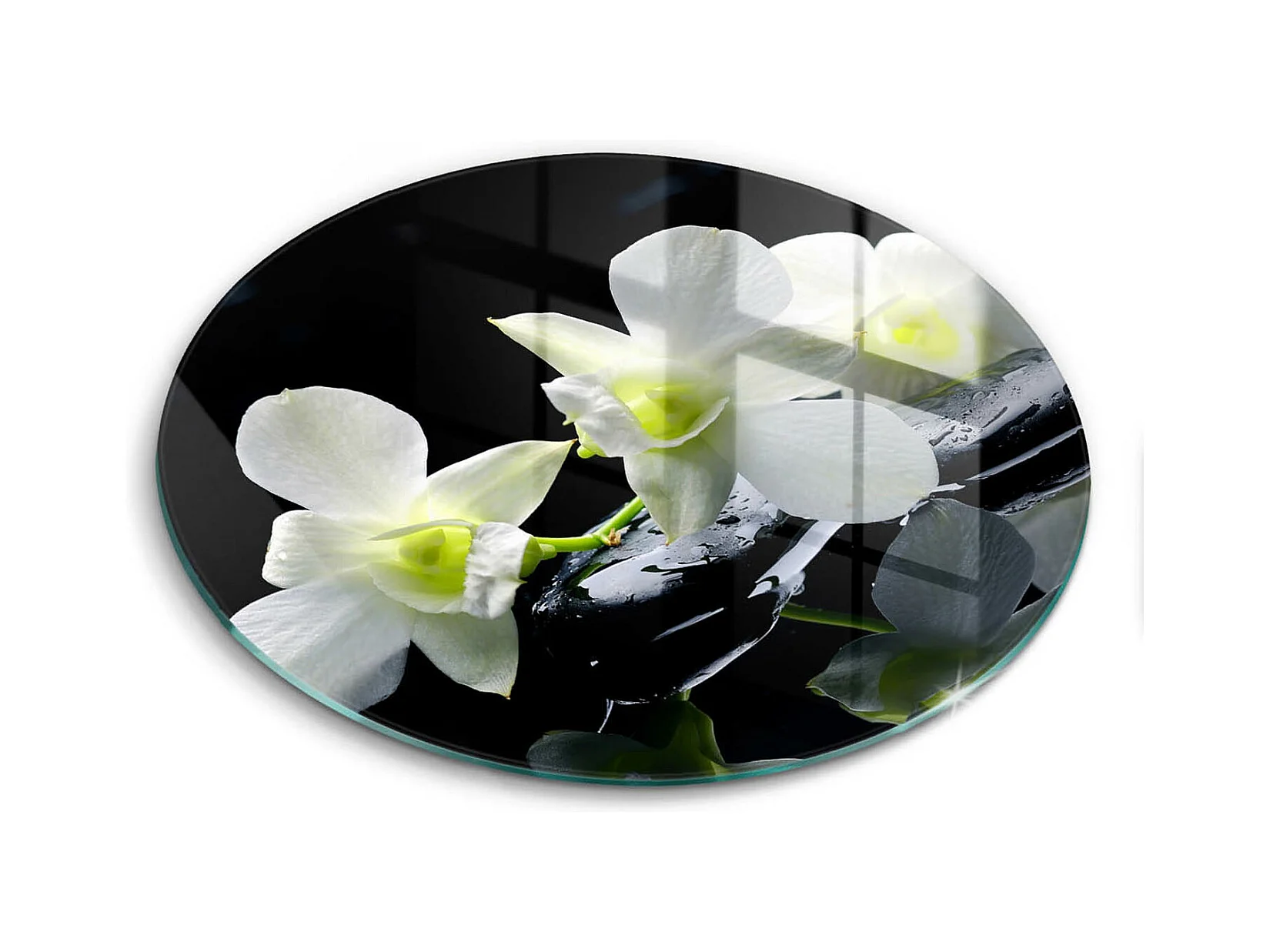 Planche de cuisine ronde en verre, 40 cm Fleurs blanches dans l'eau zen