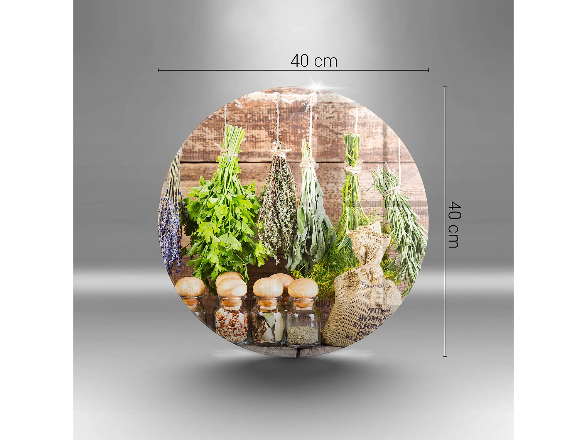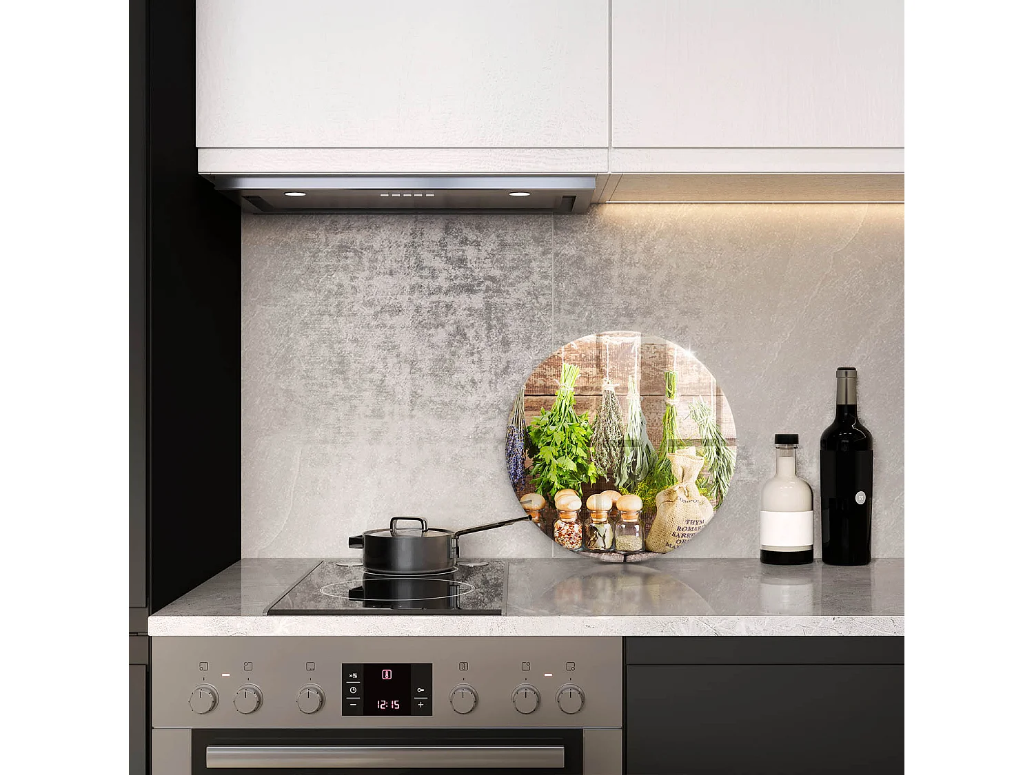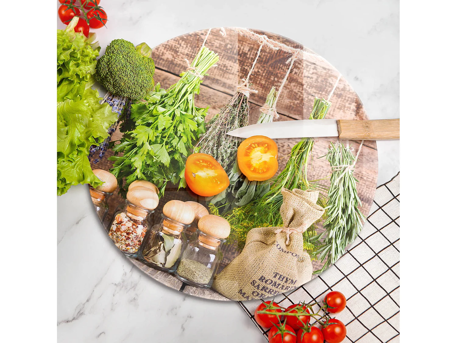 Planche de cuisine ronde en verre, 40 cm Herbes, épices et bois