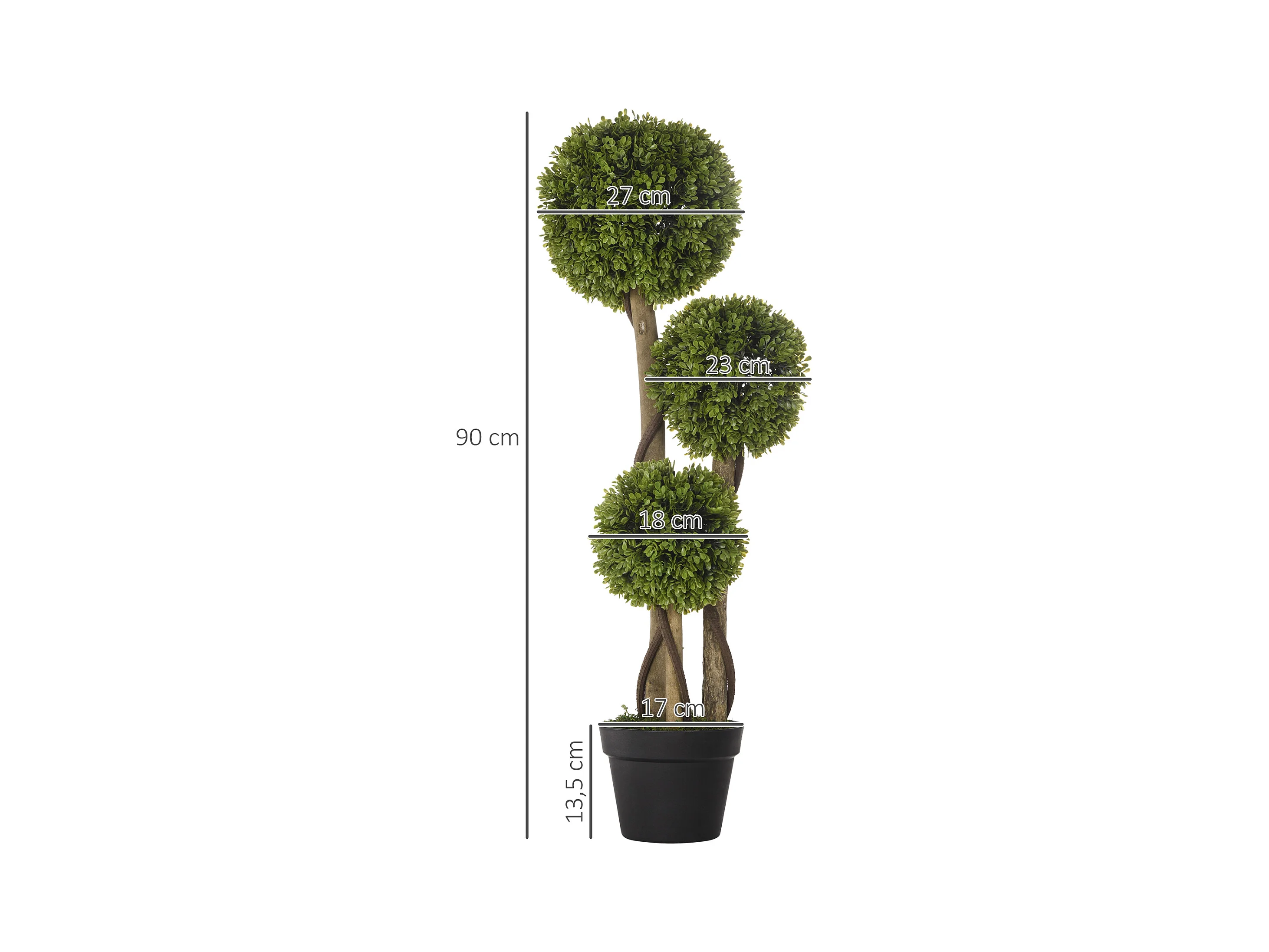Set de 2 buis artificiels avec double boule, plante décorative UV résistante pour intérieur et extérieur, vert (18x18x90 cm)