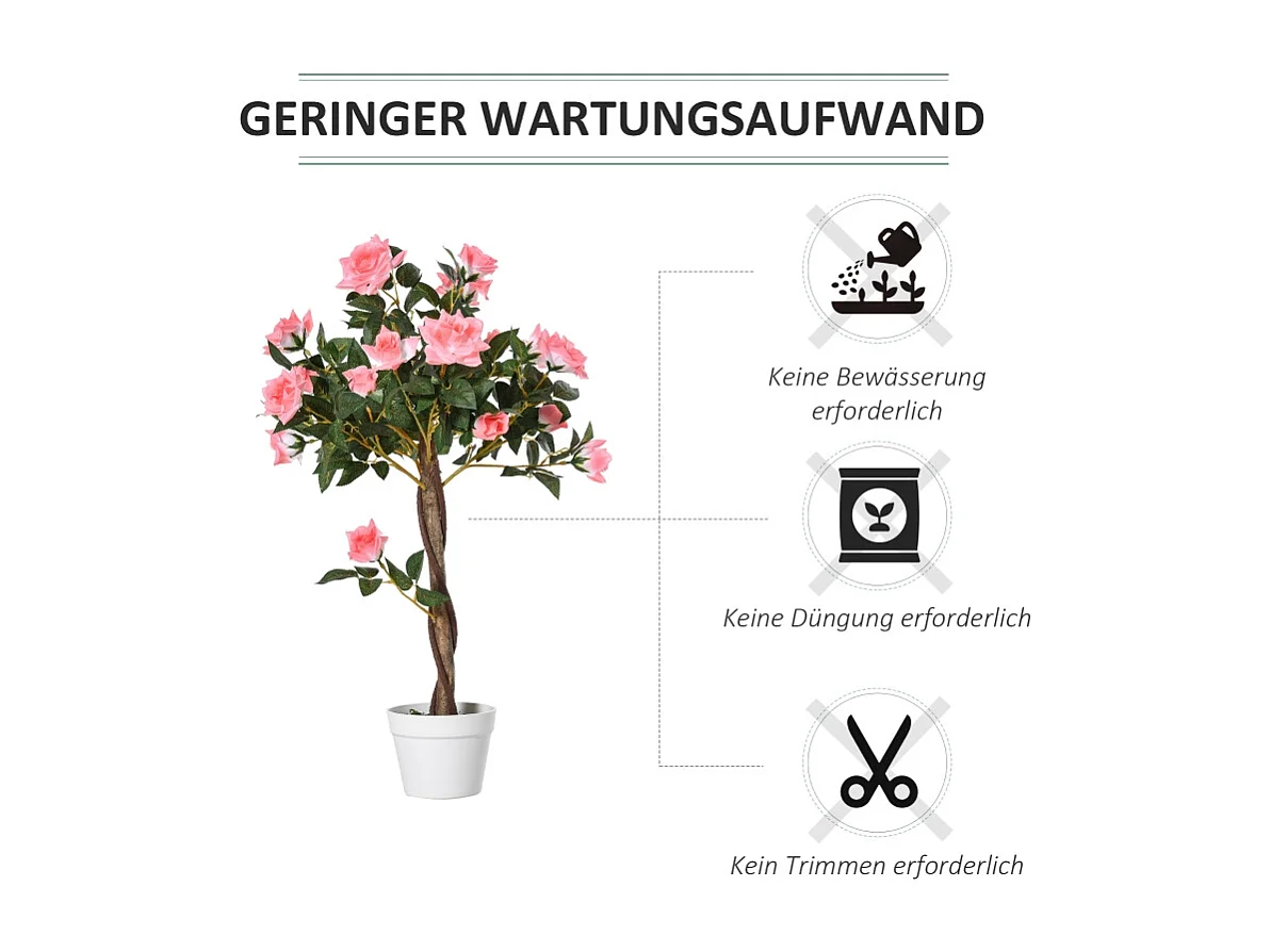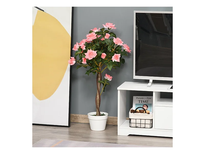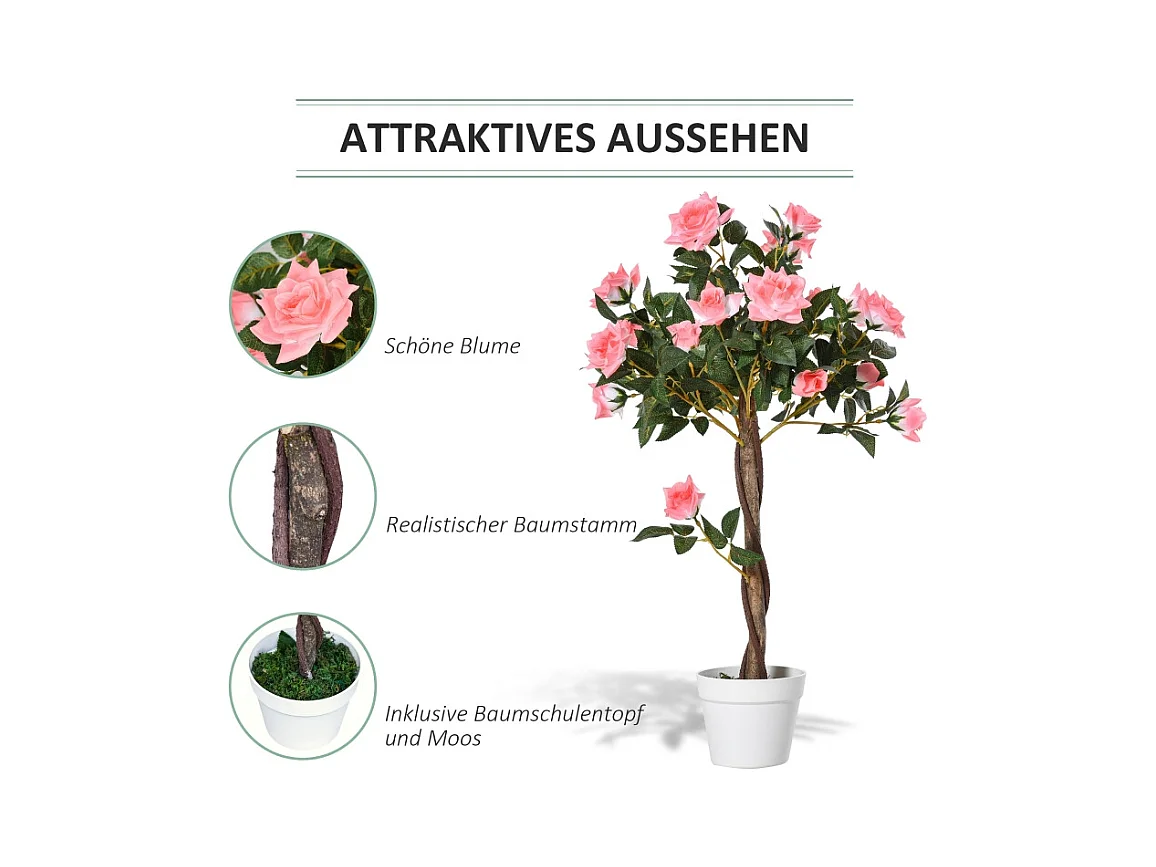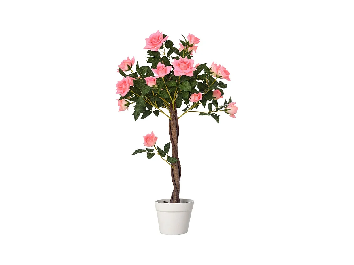 Plante artificielle Rose 90 cm, Décorative en pot, plastique, blanc (18x18x90 cm)