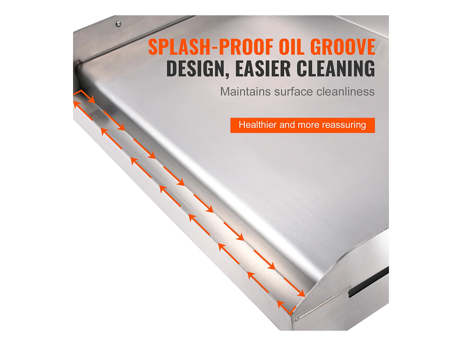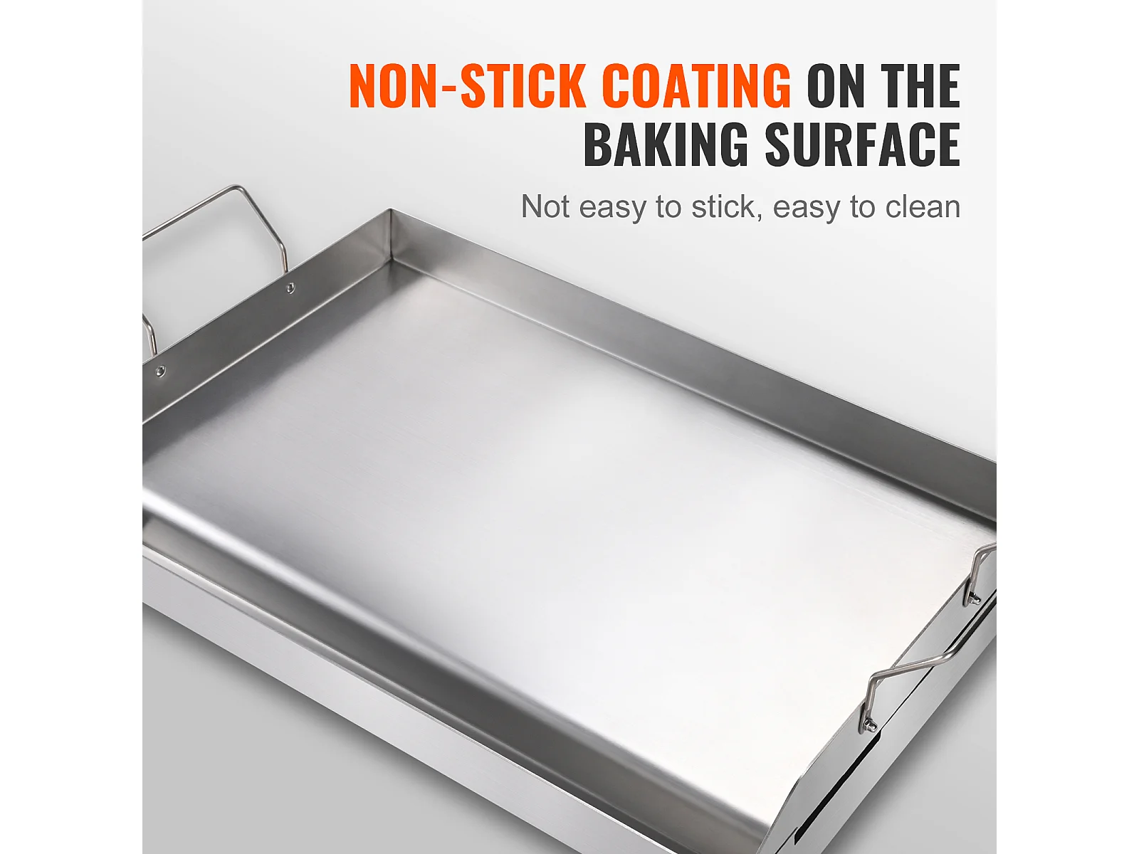Plaque de Cuisson à Dessus Plat SucceBuy, en Acier Inoxydable, 60 x 41 cm, pour Barbecue et Gril à Gaz 2 Brûleurs, Argent