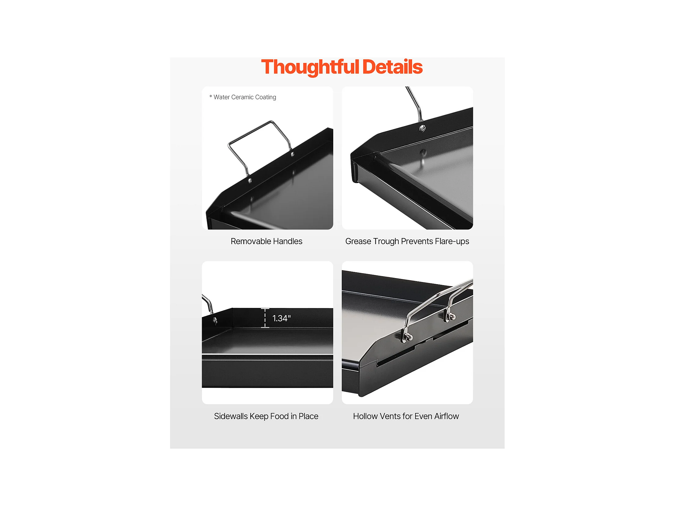 Plaque de Grill, SucceBuy Plaque de Cuisson en Acier au Carbone, 60.5 x 36 cm, Ustensile de Cuisine Portable à Gaz avec Poignée, Idéale pour Camping, Noire