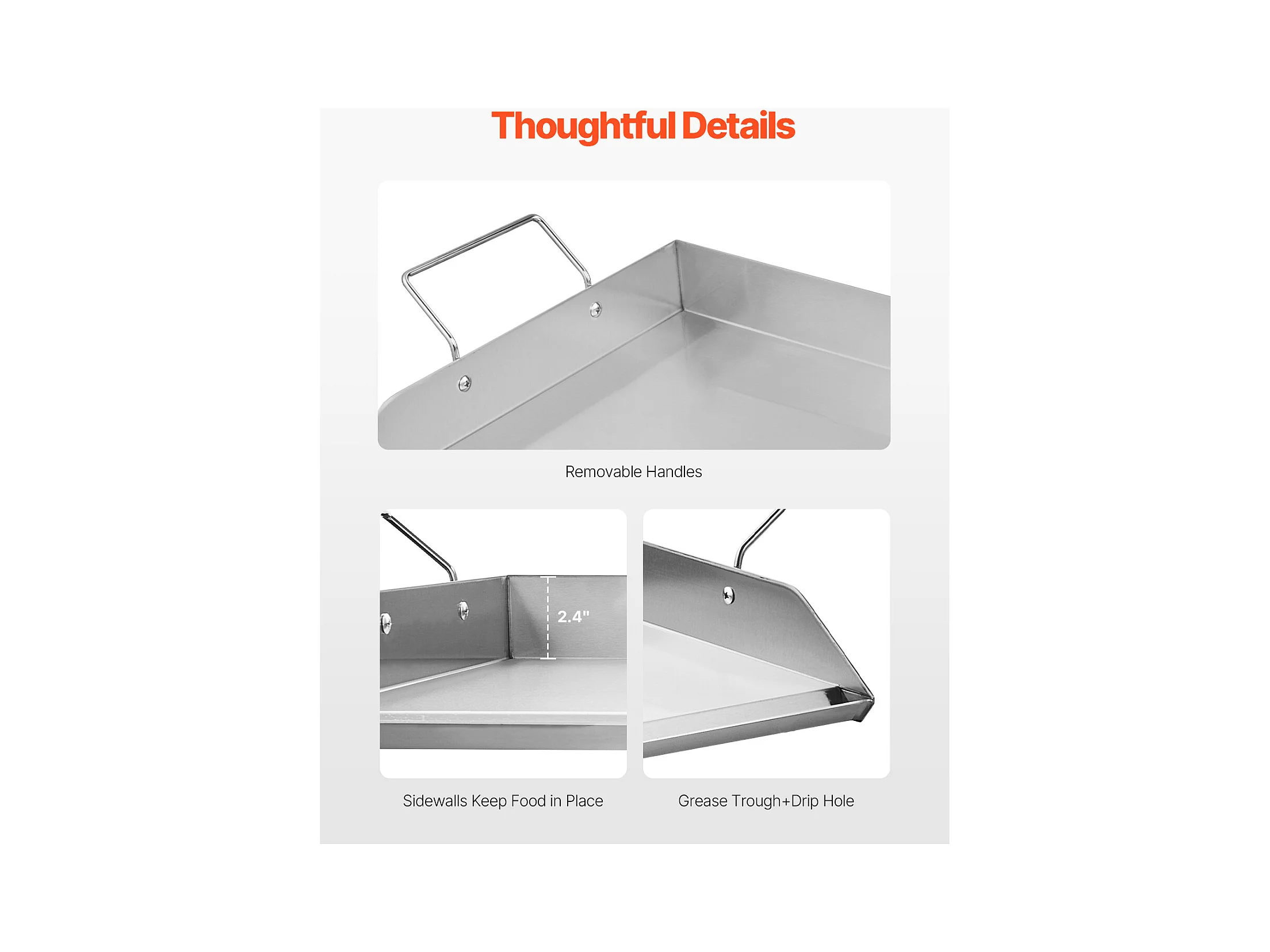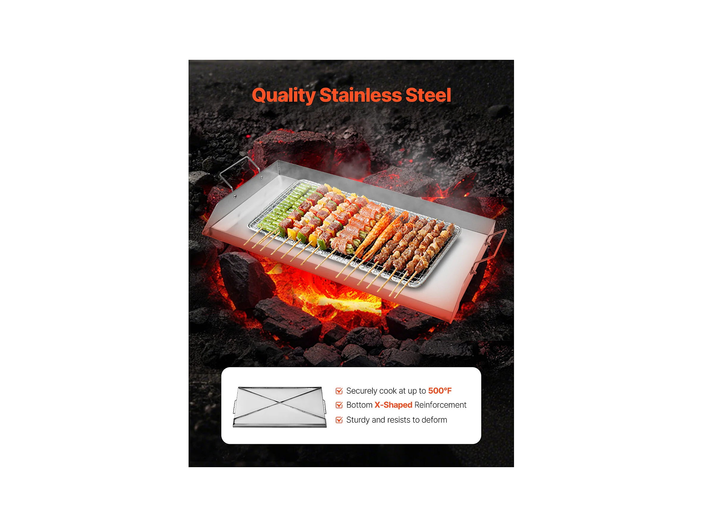 Plaque de Gril, SucceBuy Plaque de Cuisson en Acier Inoxydable pour Barbecue, Surface Plate 448 × 370 mm