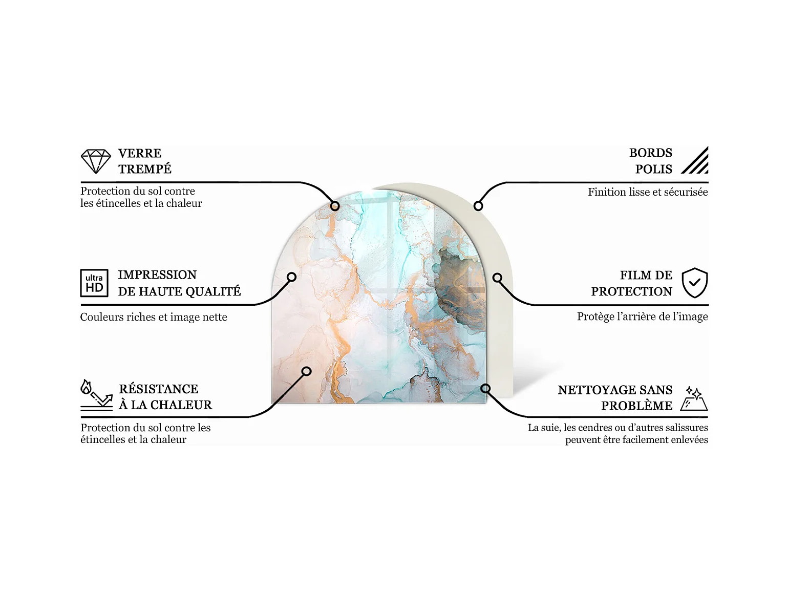 Plaque de sol en verre pour poêle - semi-circulaire - 100x100 - Marbre élégant avec des veines
