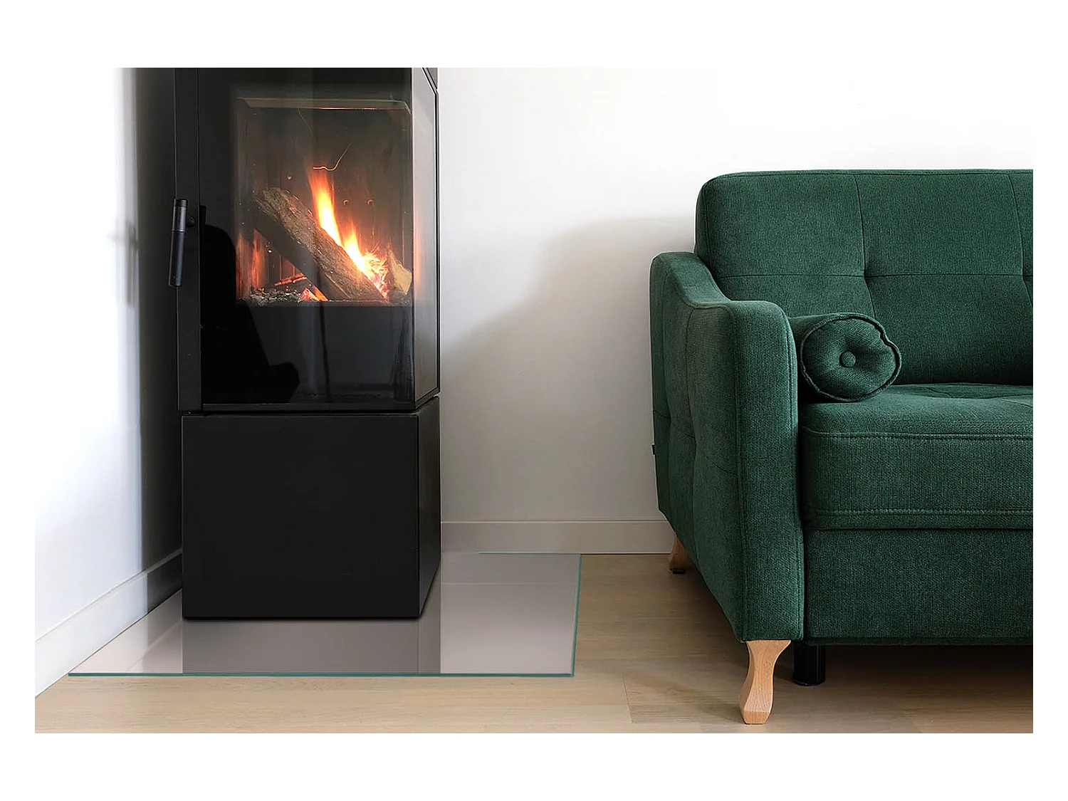 Plaque de sol en verre pour poêle - Un quart - 1/4 100x100 - Couleur Gris clair