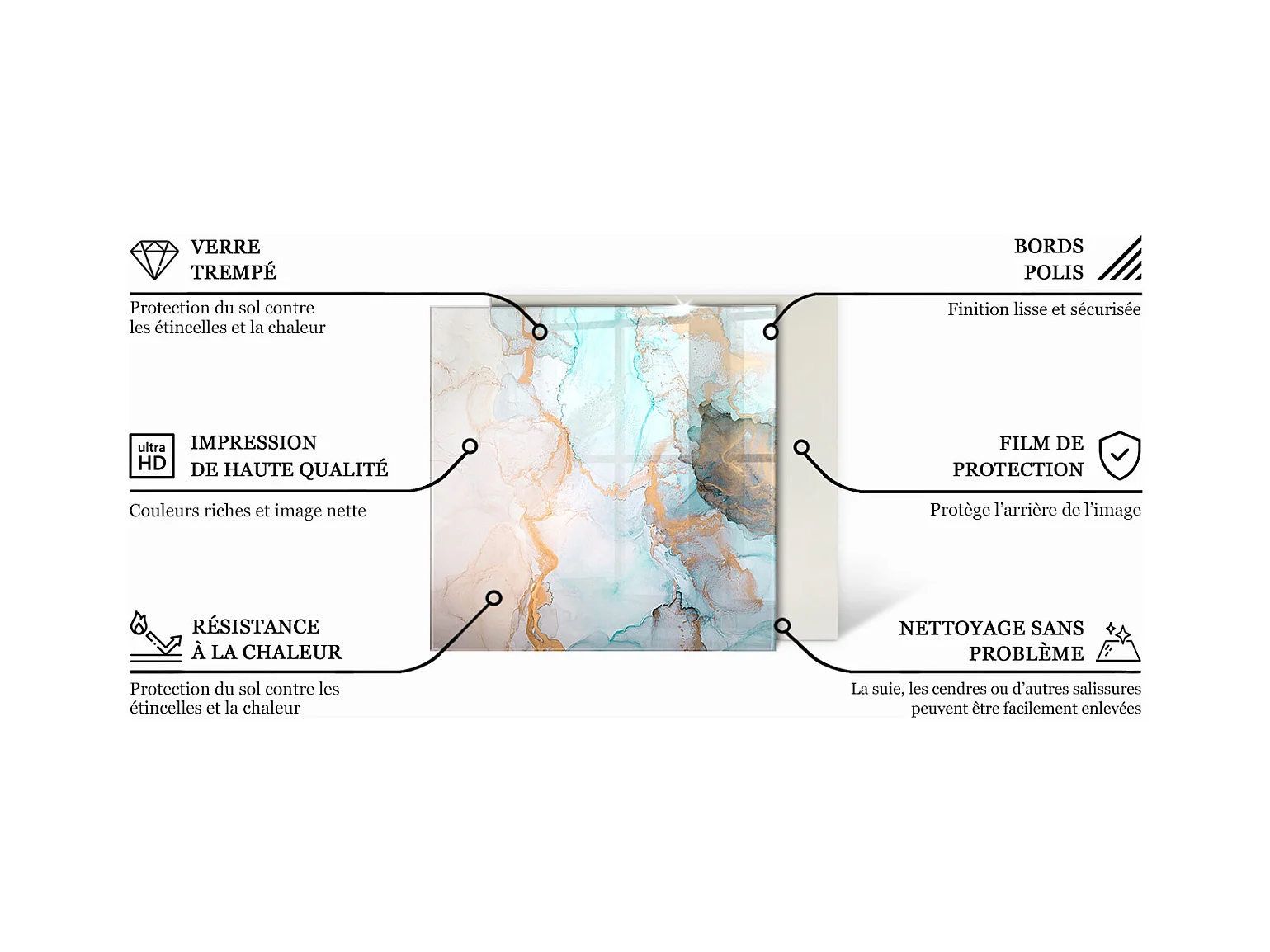 Plaque de sol en verre pour poêle - Carré - 60x60 - Motif en pierre naturelle