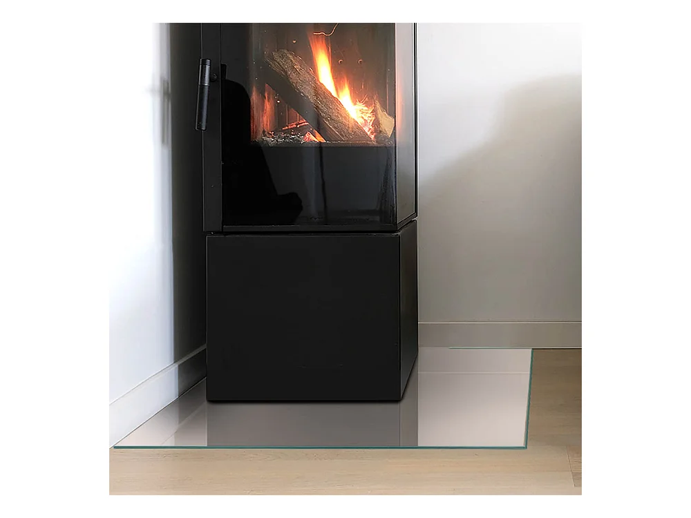 Plaque de sol en verre pour poêle - Un quart - 1/4 100x100 - Couleur Gris