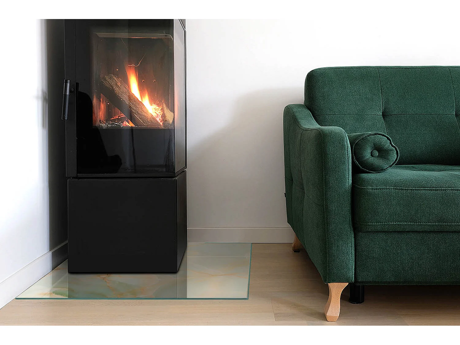 Plaque de sol en verre pour poêle - Un quart - 1/4 100x100 - Couleur Beige