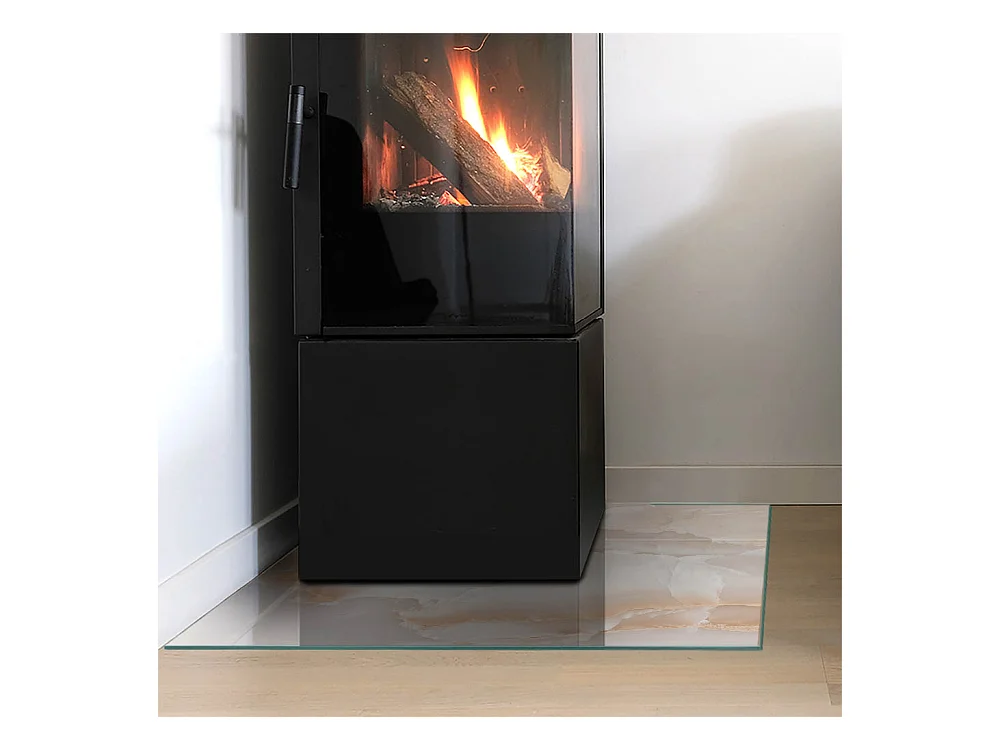 Plaque de sol en verre pour poêle - Carré - 60x60 - Motif en pierre naturelle