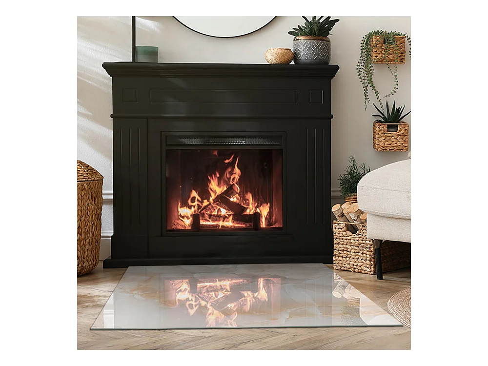 Plaque de sol en verre pour poêle - Rectangle - 100x70 - Motif en pierre naturelle
