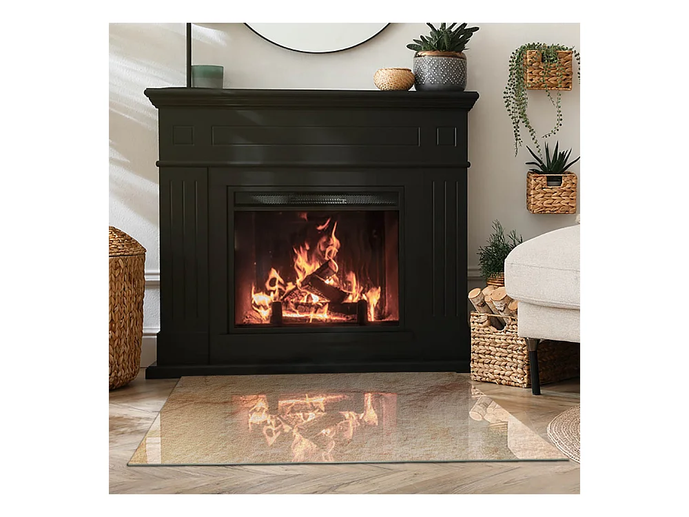 Plaque de sol en verre pour poêle - Rectangle - 100x70 - Motif en pierre naturelle