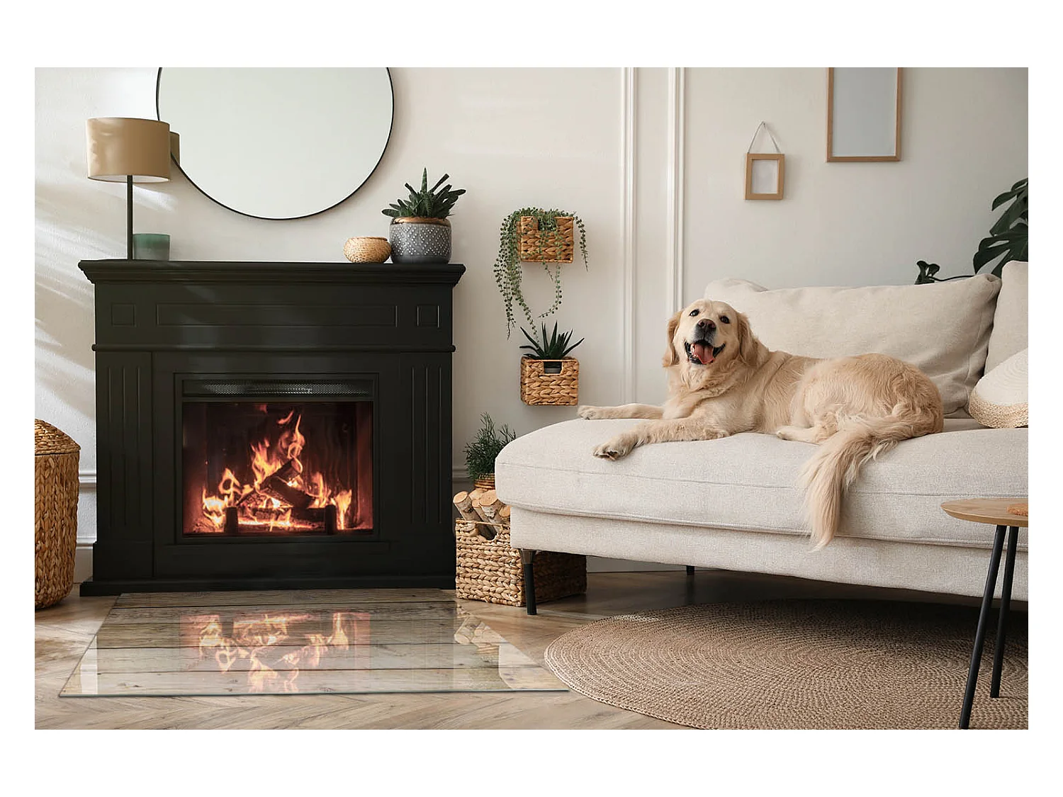 Plaque de sol en verre pour poêle - Rectangle - 100x70 - Motif en pierre naturelle