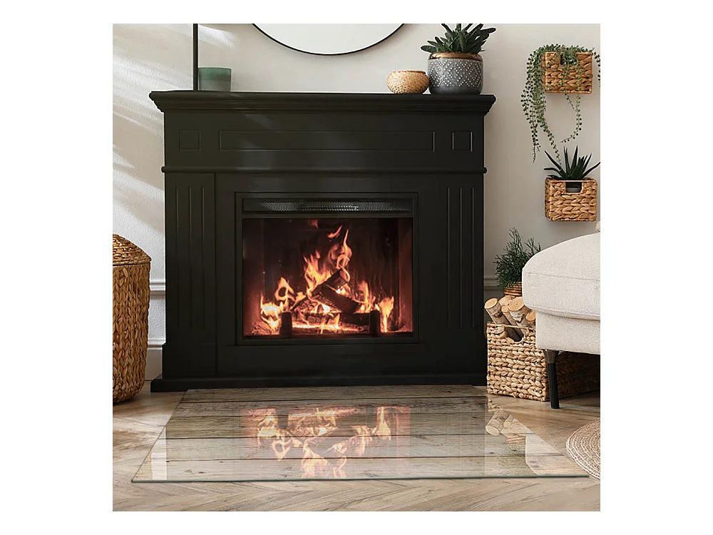 Plaque de sol en verre pour poêle - Rectangle - 100x70 - Texture des planches de bois