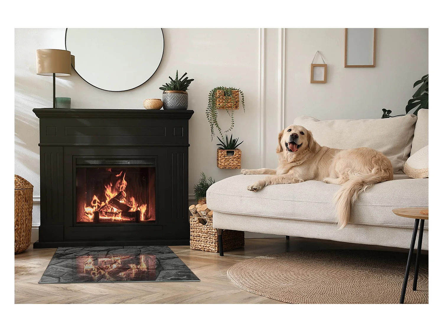 Plaque de sol en verre pour poêle - Rectangle - 80x60 - Modèle de veine de marbre