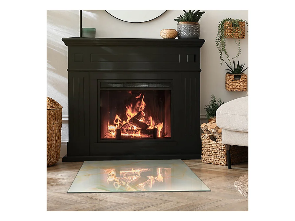 Plaque de sol en verre pour poêle - Rectangle - 80x60 - Motif en pierre naturelle