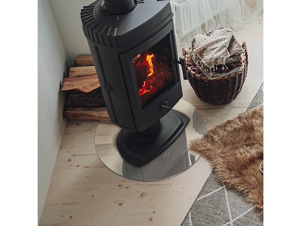 Plaque de sol en verre pour poêle - Roue - 50x50 - Couleur Beige