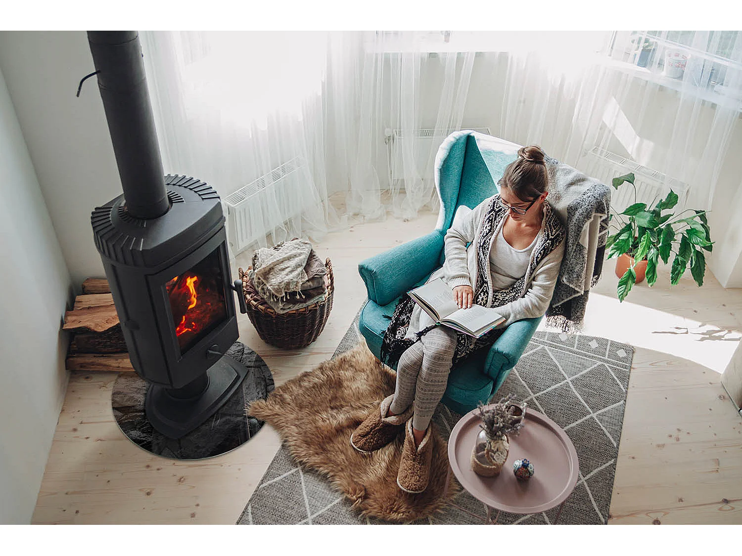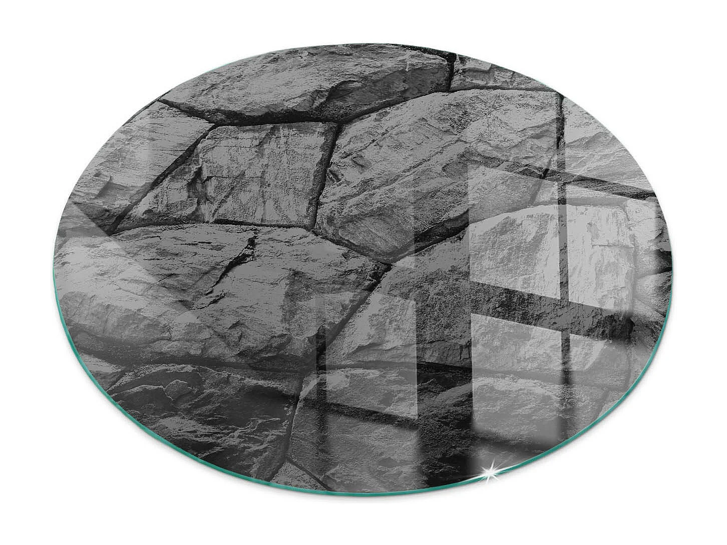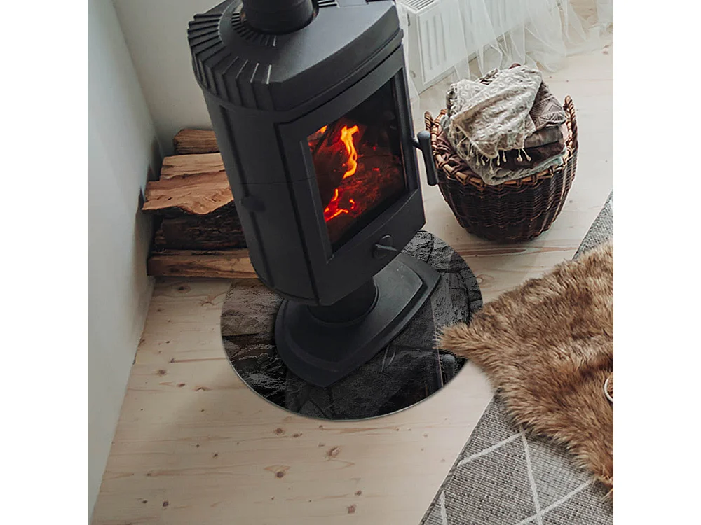 Plaque de sol en verre pour poêle - Roue - 50x50 - Motif en pierre naturelle