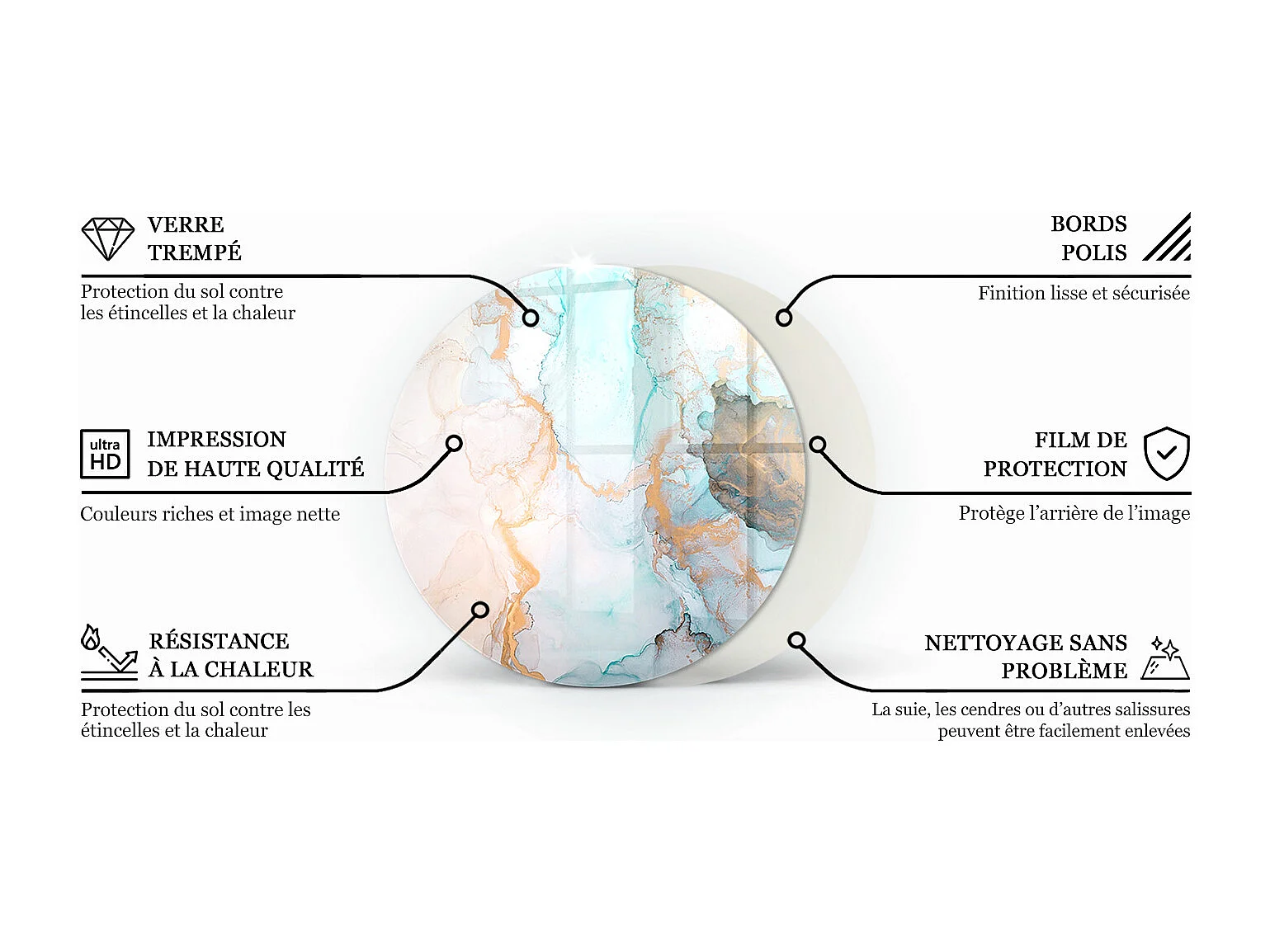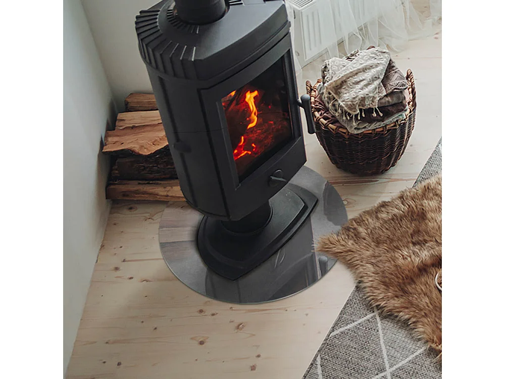 Plaque de sol en verre pour poêle - Roue - 50x50 - Texture béton avec effet