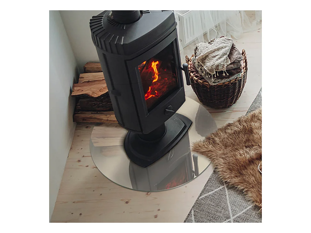 Plaque de sol en verre pour poêle - Roue - 60x60 - Couleur Beige