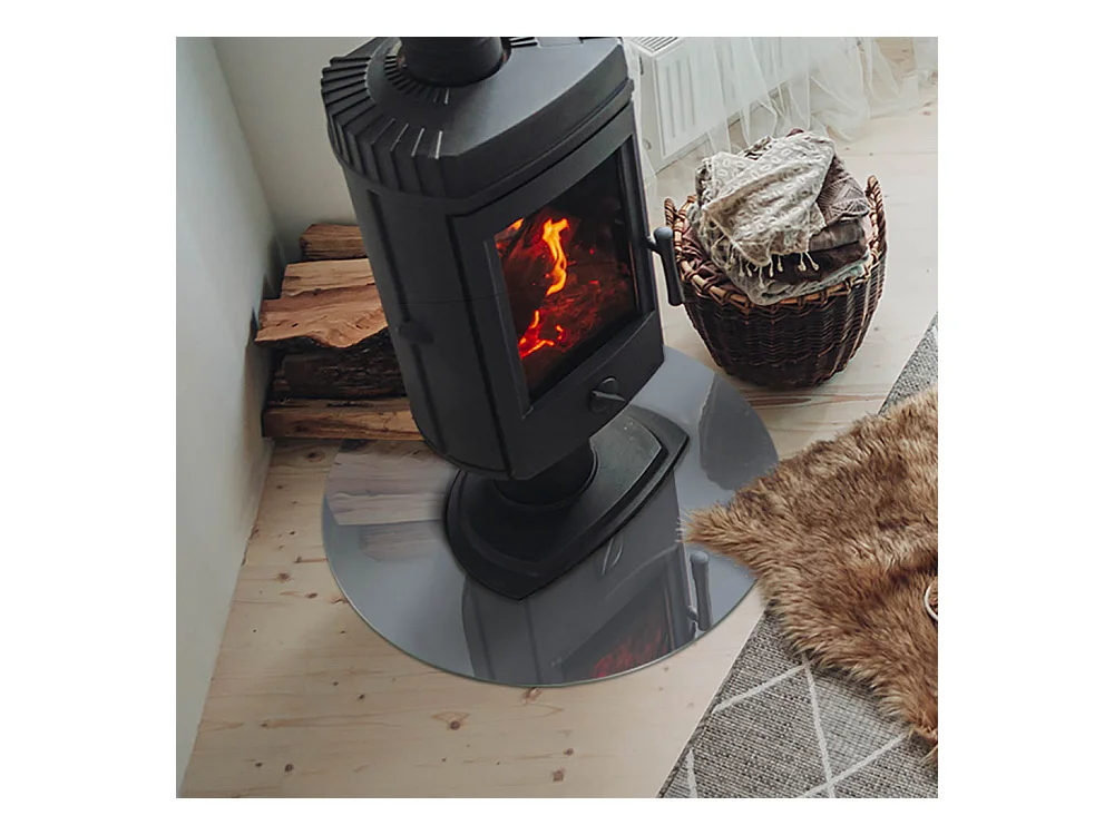 Plaque de sol en verre pour poêle - Roue - 60x60 - Couleur Gris